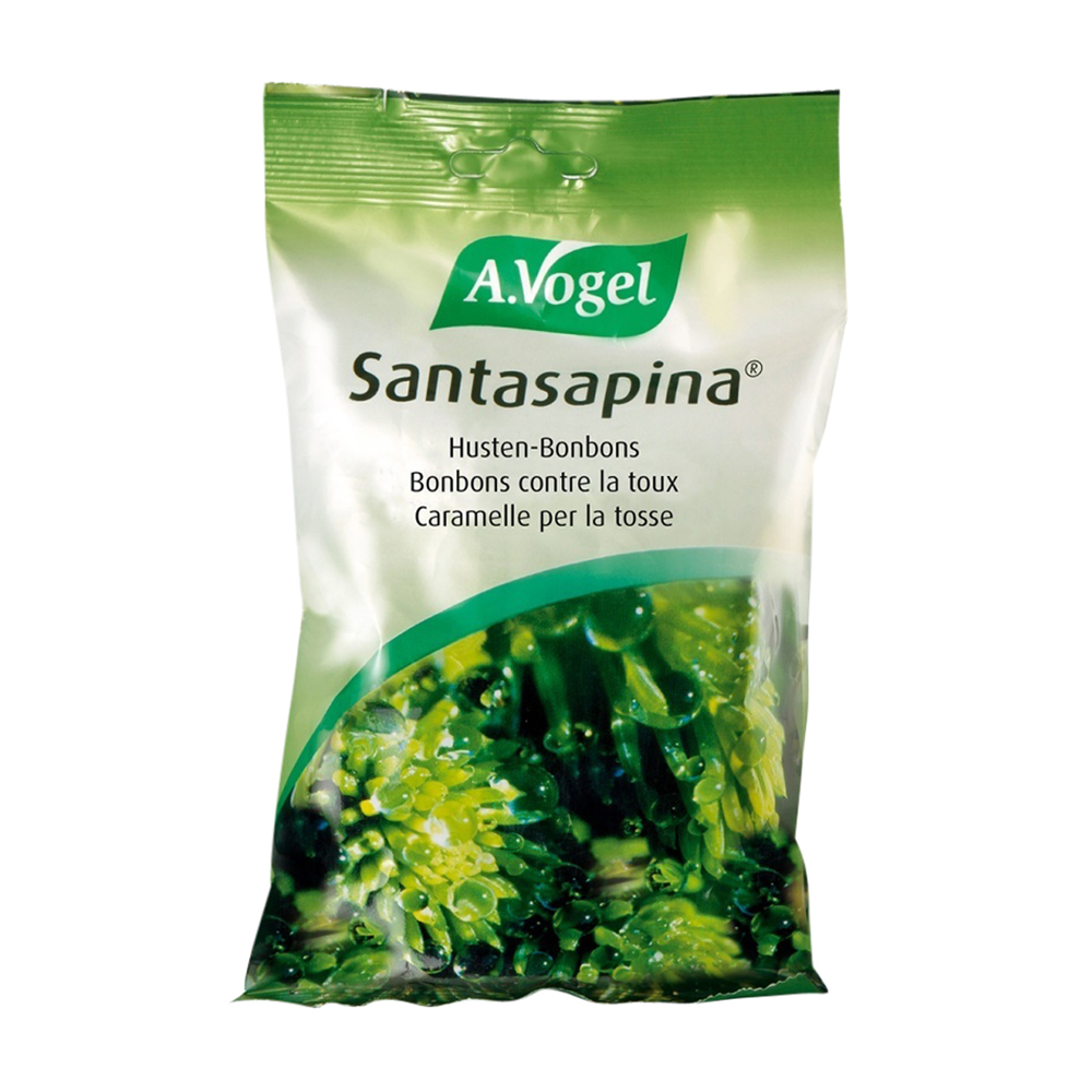 A.Vogel Santasapina Bonbons enthalten den flüssigen Rottannenknospen-Extrakt und Honig. Wohltuend für Rachen und Hals bei Heiserkeit, Husten und Katarrh. Sie wirken lösend bei leichter Verschleimung. Auch für Kinder bestens geeignet.