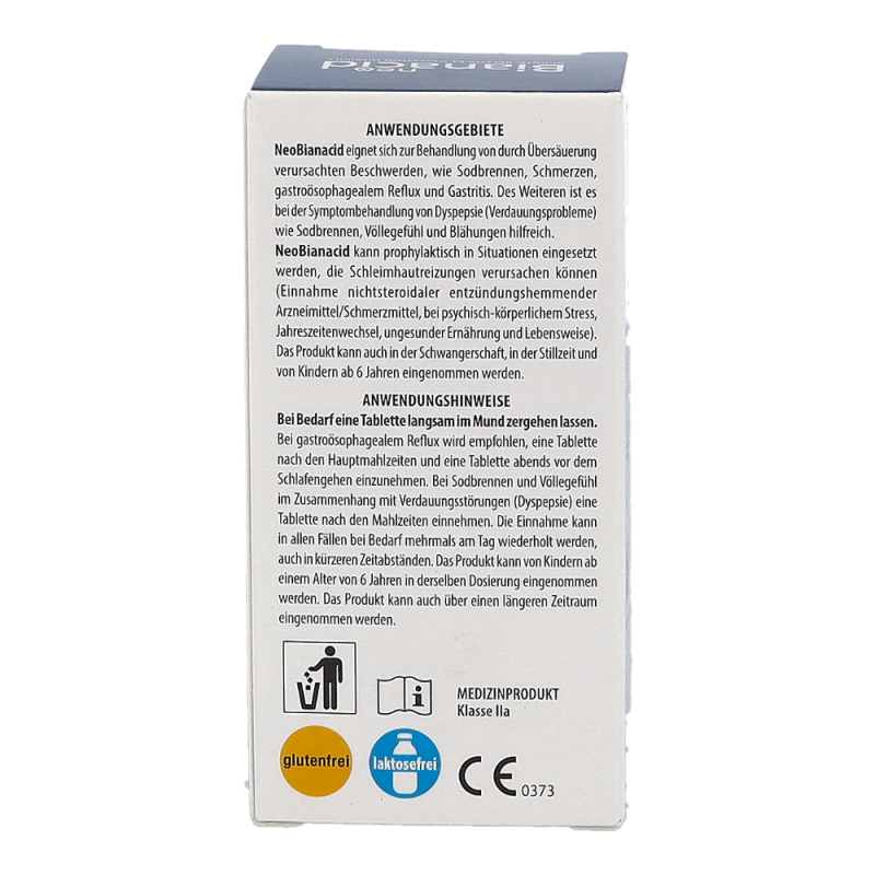 NeoBianacid eignet sich zur Behandlung von Beschwerden, die durch überschüssige Säure verursacht werden, wie Sodbrennen, Schmerzen, gastroösophagealem Reflux und Gastritis. Es kann ebenfalls bei Symptomen der Dyspepsie (Verdauungsstörungen) wie Völlegefühl, Blähungen und Sodbrennen angewendet werden.