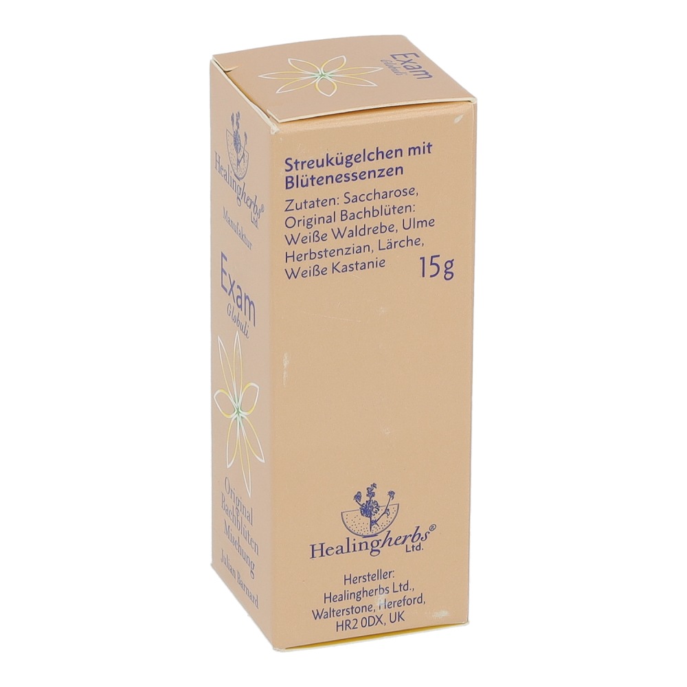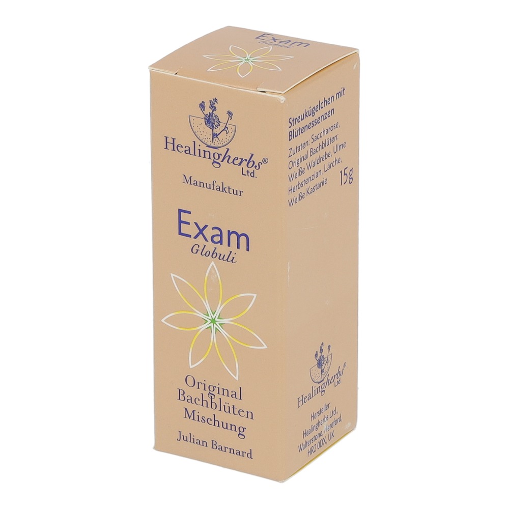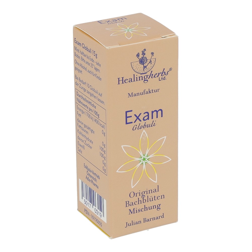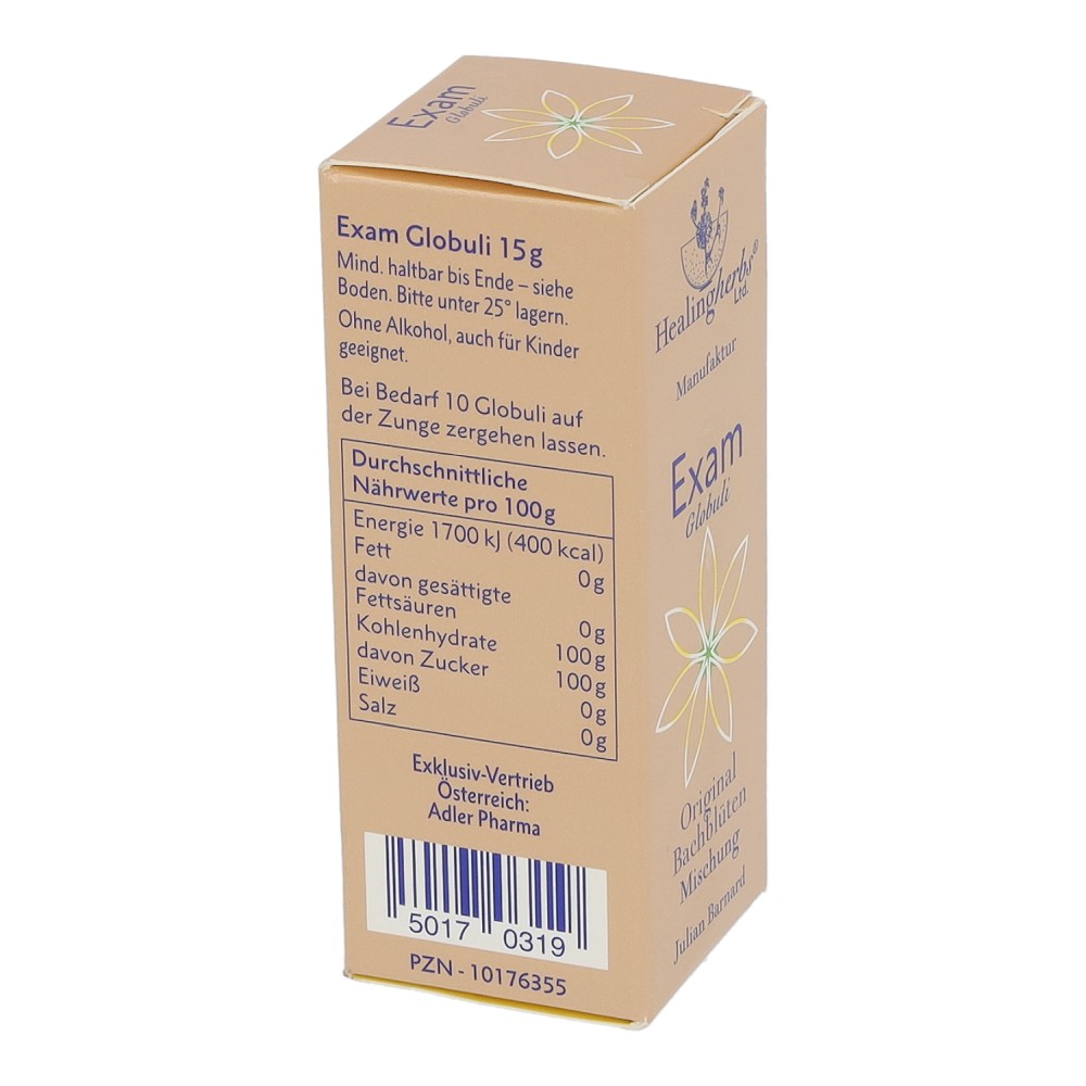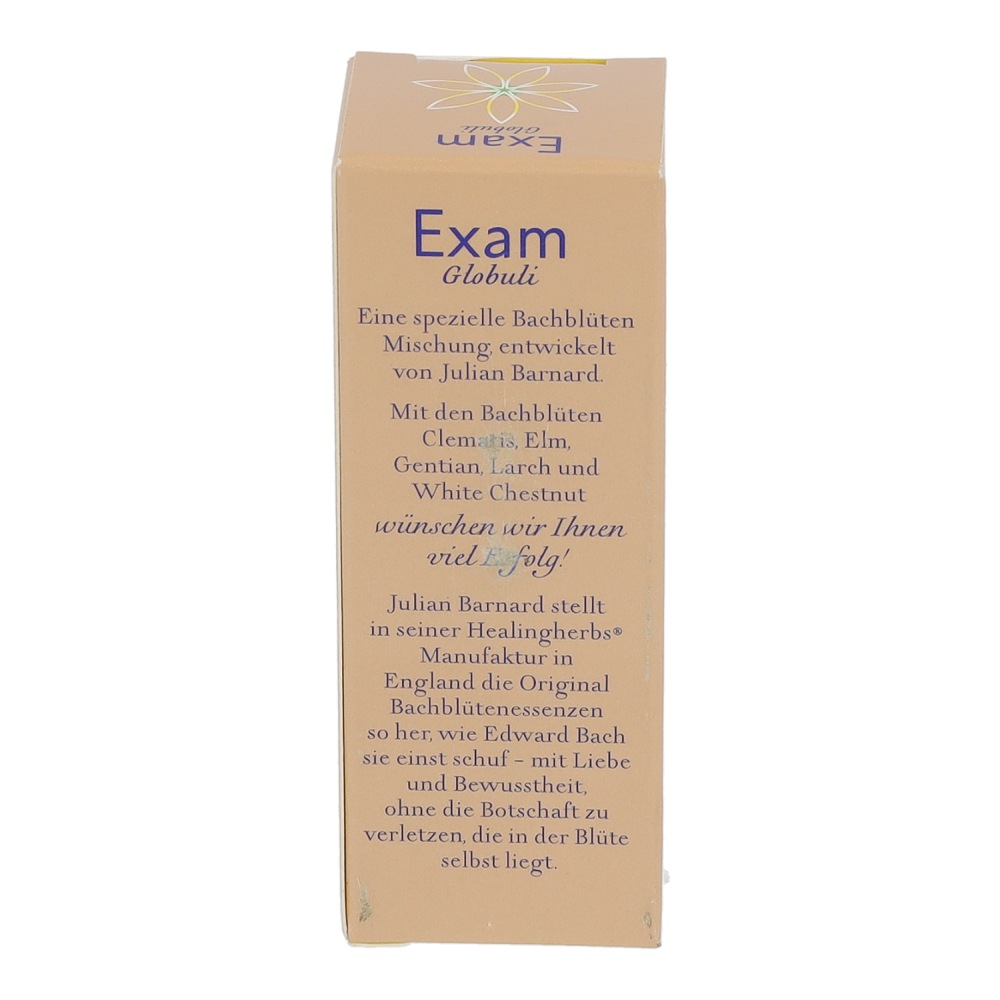 Adler Bachblüten Globuli Exam ist eine Essenz mit den Bachblüten Clematis, Elm, Gentian, Larch und White Chestnut. Diese Essenz wird auch als Prüfungsglobuli bezeichnet und soll in Zeiten psychischen Druckes helfen, einen kühlen Kopf zu bewahren. Bachblütenessenzen werden genutzt um den emotionalen Zustand eines Menschen zu behandeln, welcher wie Bach glaubte die Ursache für körperliche Gesundheitsprobleme war.