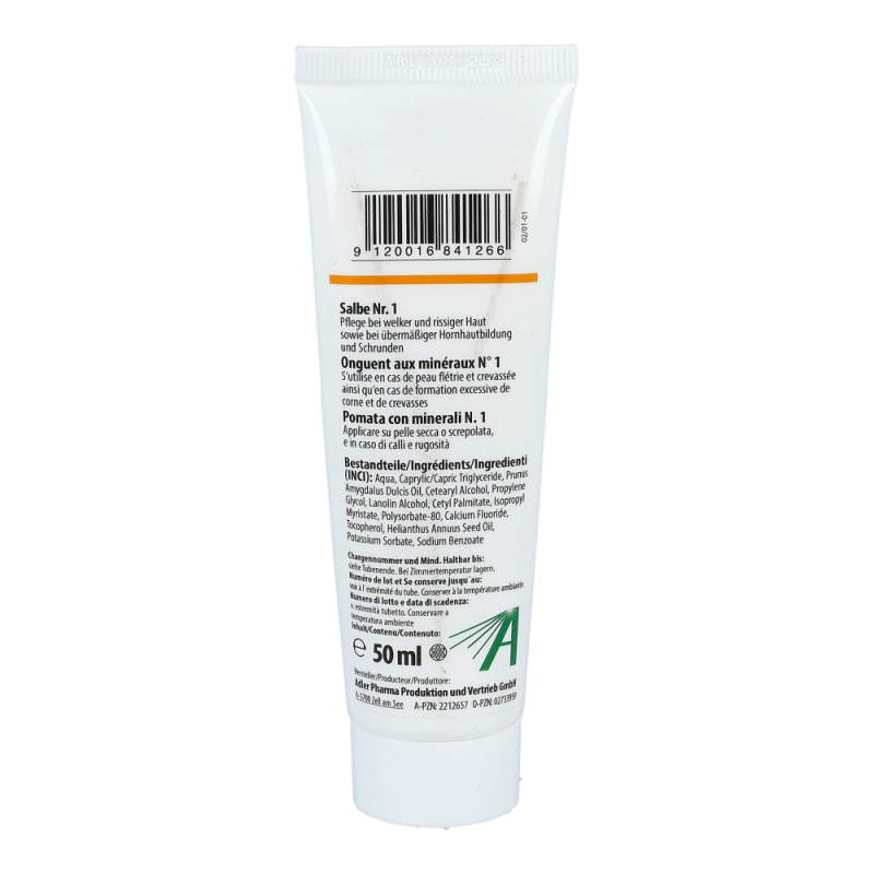 Mineralstoffsalbe Nr. 1 Calcium Fluorid kommt dann zum Einsatz, wenn die betroffenen Hautstellen eine Fettversorgung brauchen, weil die Haut zu trocken, rissig, oder rau ist. Außerdem ist die Wirkung der Mineralstoffe in der Salbe länger anhaltend, weil sie nicht so rasch einzieht. Calciumfluorid sorgt für Elastizität des Bindegewebes und bindet Hornstoff im Körper. Überall, wo sich Gewebe zusammenzieht, dehnt oder verhärtet, sollte die Mineralstoffsalbe Nr. 1 zum Einsatz kommen. Bereits verhärtete Gewebsstellen können wieder weich und geschmeidig werden, erschlafftes und gedehntes Gewebe kann sich straffen. Calciumfluorid ist das Salz des Bindegewebes, der Gelenke und der Haut. Die Salbe sollte verwendet werden, wo sich Gewebe dehnt oder verhärtet, wie: Gewebsverhärtungen, Narbengewebe, verhärtete Lymphknoten, verhärtete Drüsen, Krampfadern, Hämorrhoiden, Bänderschwäche (Schlottergelenke), Hornhaut, Schrunden, Risse, Nagelverwachsungen, Nagelbetteiterungen etc..