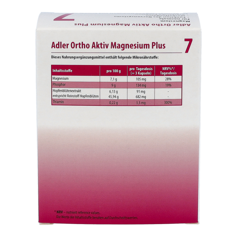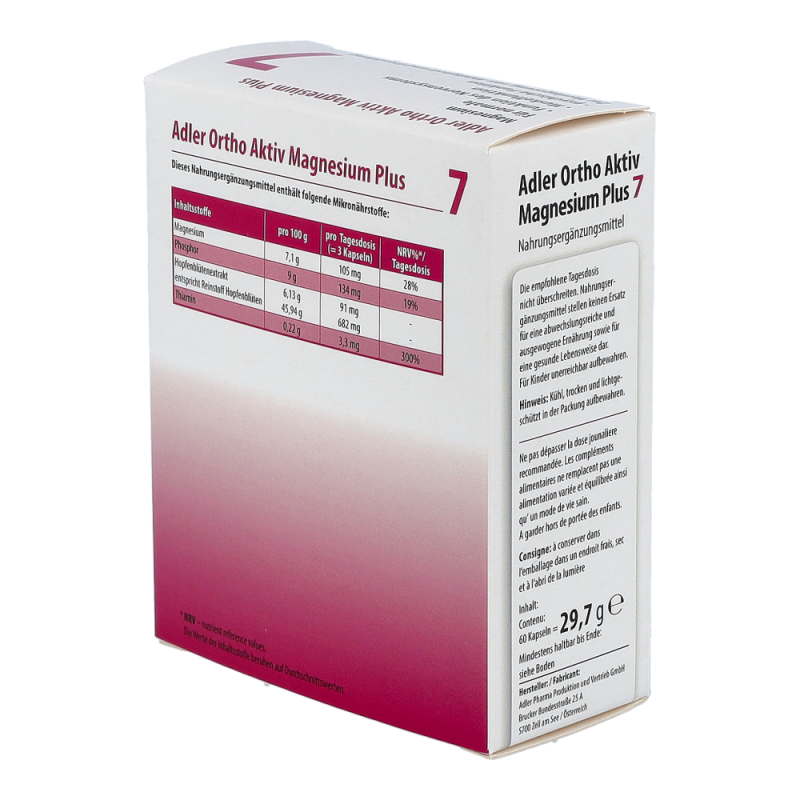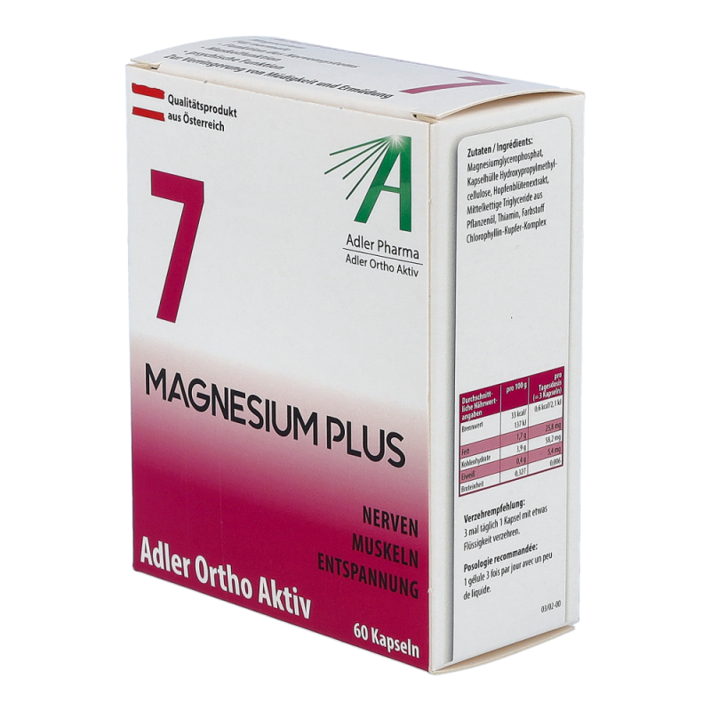Adler Ortho Aktiv – die auf jedes Schüßler Salz von Nr. 1 – Nr. 12 abgestimmte Nährstoffkombinationen, welche die ganzkörperliche Wirkung des betreffenden Schüßler Salzes begleiten und unterstützen.Magnesium trägt zu einem normalen Energiestoffwechsel, zu einer normalen Funktion des Nervensystems, zu einer normalen Muskelfunktion, zur normalen psychischen Funktion und zur Verringerung von Müdigkeit und Ermüdung beiThiamin trägt zu einem normalen Energiestoffwechsel, zu einer normalen psychischen Funktion, zu einer normalen Herzfunktion und zu einer normalen Funktion des Nervensystems bei.