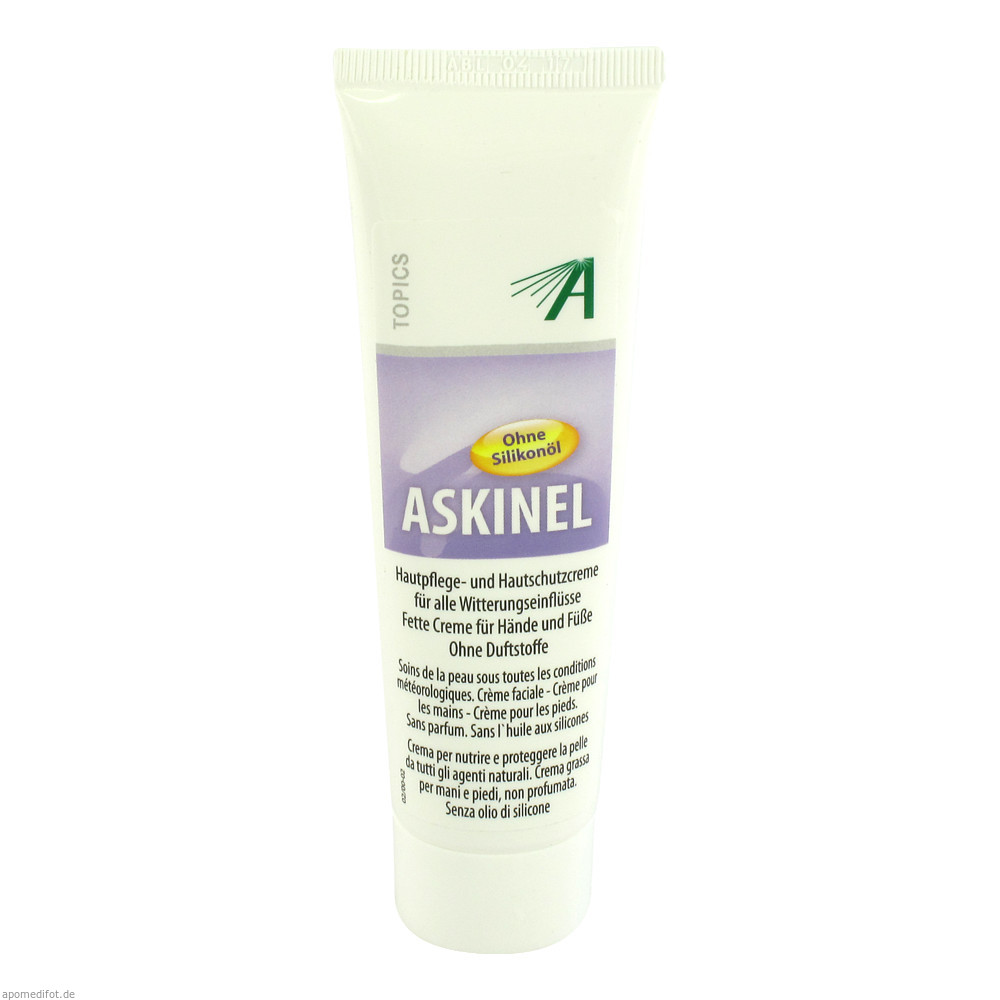 Adler Pharma Dr. Schüßler Askinel Kälte Creme ist eine Kälte- und Hautschutzcreme für den Aufenthalt im Freien und beim Sport. Durch den Gehalt an hochverdünnten Mineralstoffen verbunden mit wertvollen pflanzlichen Ölen sowie Bienenwachs eignet sich Askinel zur täglichen Pflege von rissigen und trockenen Hautstellen. Harte, störende Narben werden wieder weicher und geschmeidiger.