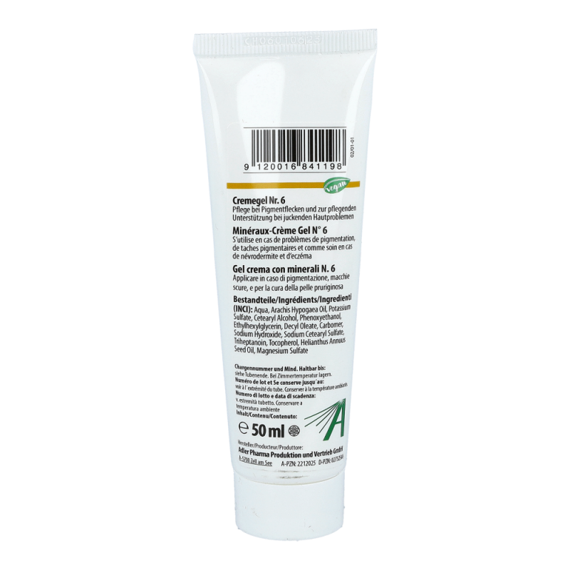 Adler Pharma Dr. Schüßler Creme Gel Nr. 6 regt die Pigmentierung der Haut an. Das Cremegel hat den Vorteil, dass die Wirkstoffe ohne Umwege direkt an den Behandlungsort kommen. Die Mineralstoffe werden sehr rasch in die Haut aufgenommen und haben eine intensive Tiefenwirkung.