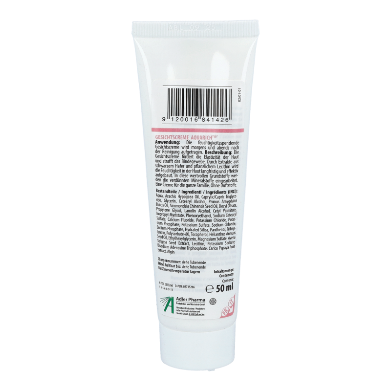 Adler Pharma Dr. Schüßler Gesichtscreme Aquarich Jojoba fördert die Elastizität der Haut, stützt das Bindegewebe und wirkt der Faltenbildung entgegen. Die enthaltenen Mineralstoffe versorgen und unterstützen die Haut in allen ihren Funktionen. Eine angenehme Feuchtigkeits- und Gesichtspflege ohne Duftstoffe, die auch für junge Haut geeignet ist.