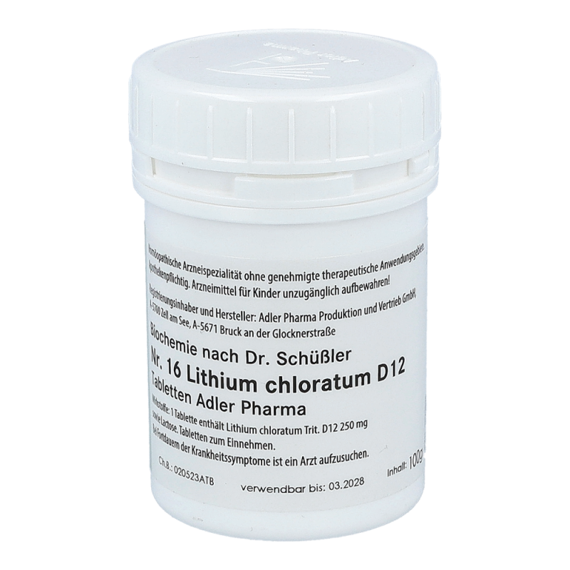 1 Tablette enthält Lithium chloratum Trit. D12 250mg sowie Lactose.