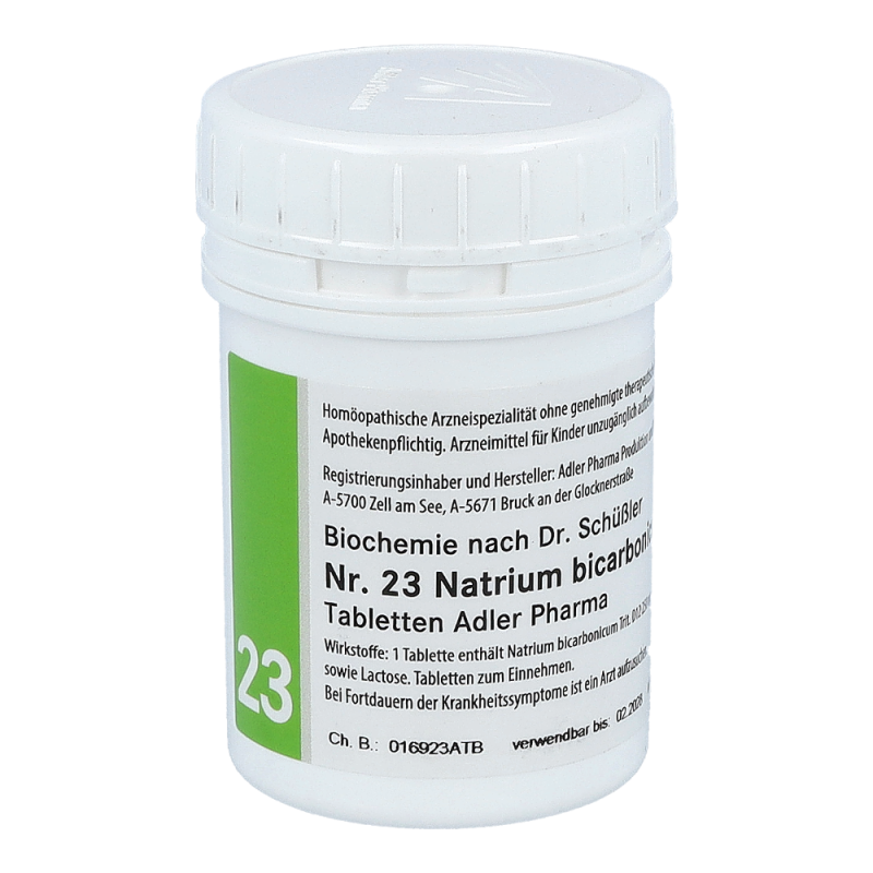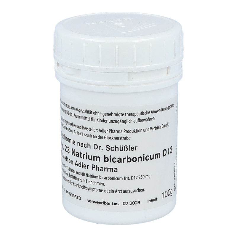 Adler Schüßler Salze Nr. 23 Natrium bicarbonicum D12 Tabletten wirkt regulierend auf den Stoffwechsel und kann überschüssige Säure binden und ausgleichen. Deshalb wird es bei Sodbrennen und zu viel Magensäure verabreicht. Zudem ist Natriumbicarbonat als Säurepuffer im Blut vorhanden. Für den Organismus ist die Abpufferung von Körperflüssigkeiten und Geweben unerlässlich, da er sie für die Funktion des Zwischenstoffwechsels benötigt..
