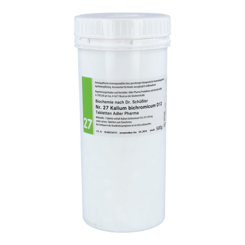 Schüßler Nr. 27 Kalium Bichronicum ist ein Ergänzungssalz, das auf die Cholesterin-Produktion selbst wirkt und somit bei erhöhten Cholesterin-Spiegel Werten angewendet werden kann. Des Weiteren wird auch der Fettstoffwechsel von dem Ergänzugnssalz reguliert. Es regt den Körper dazu an, überschüssiges Körperfett in Muskeln umzuwandeln. Dies funktioniert allerdings nur unter regelmäßiger sportlicher Betätigung.