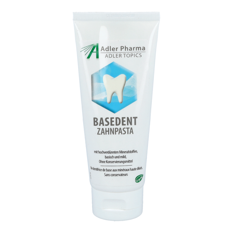Adler Pharma Dr. Schüßler Zahnpaste Base dent sorgt durch das Zusammenspiel ausgewählter Wirkstoffe für ein Rund-Um-Wohlbefinden im Mundraum und beugt Entzündungen des Zahnfleisches, Zahnfleischschwund und Zahnfleischbluten vor. Sie schützt zudem durch den basischen ph-Wert den Zahnschmelz vor einer schädlichen Übersäuerung, regt den Speichelfluss zusätzlich an und unterstützt so die natürliche Selbstreinigung.