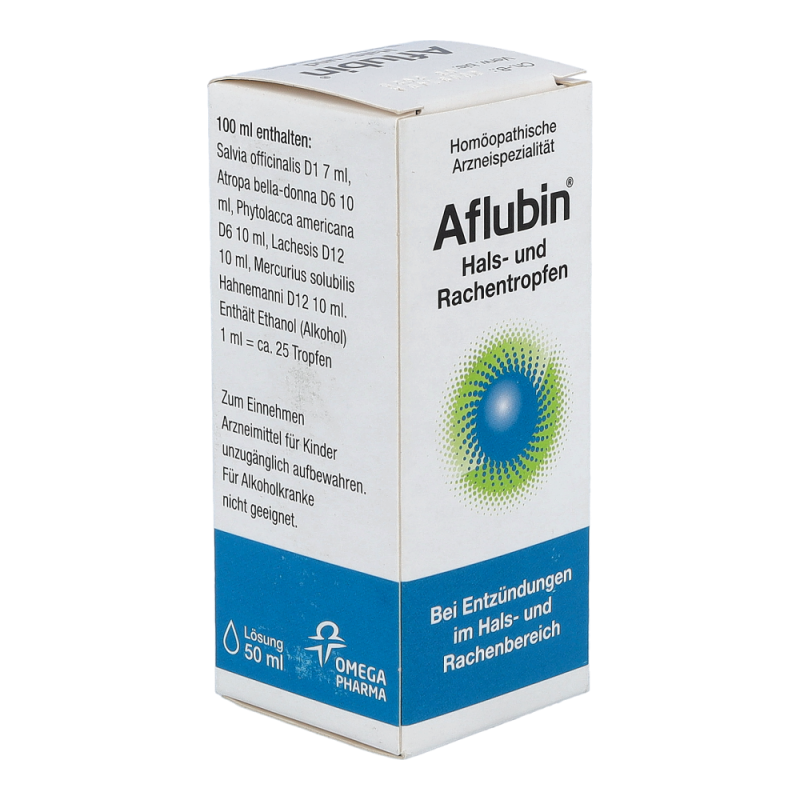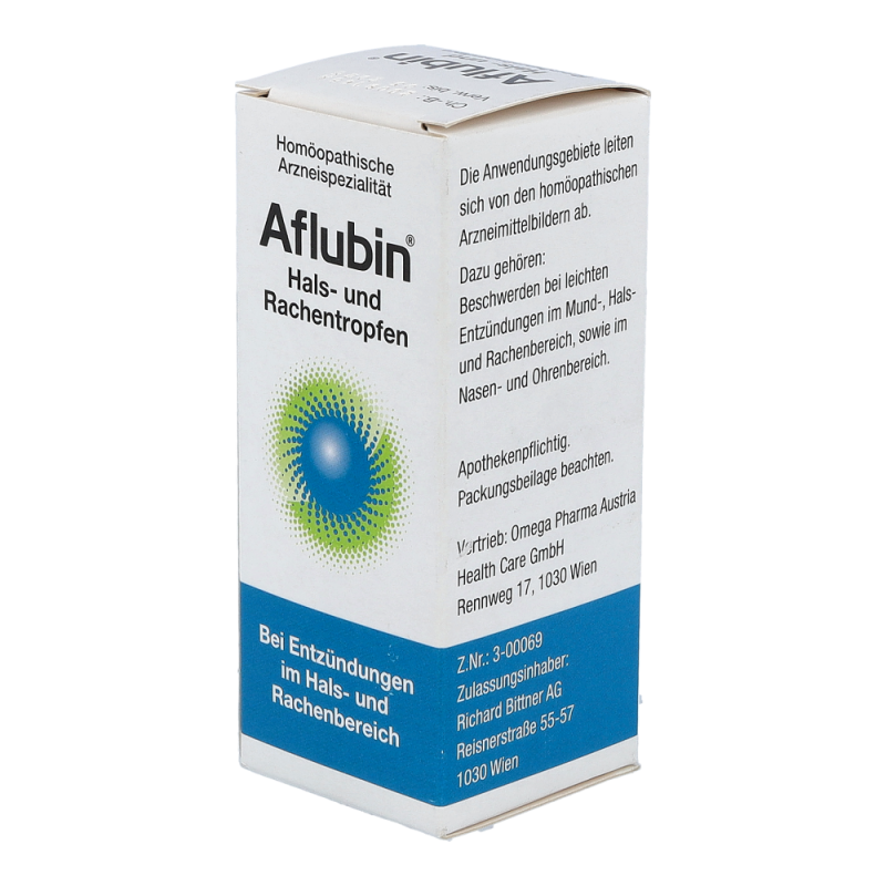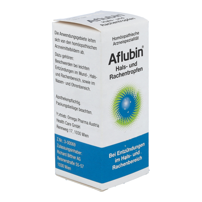 AFLUBIN® – Hals- und Rachentropfen sind ein homöopathisches Arzneimittel und dient zur Behandlung von Beschwerden durch leichte Entzündungen im Mund-, Hals- und Rachenbereich, sowie im Nasen- und Ohrenbereich..