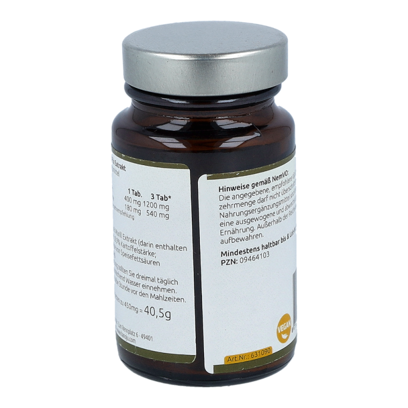 Zur Nahrungsergänzung dreimal täglich eine Tablette mit viel Wasser einnehmen. Vorzugsweise eine halbe Stunde vor den Mahlzeiten.