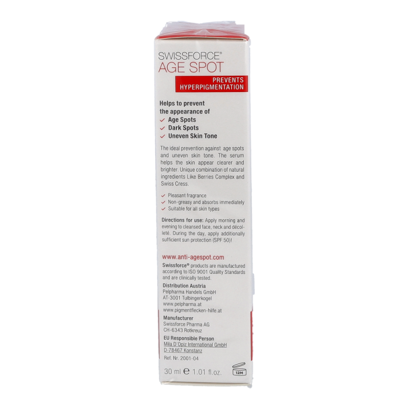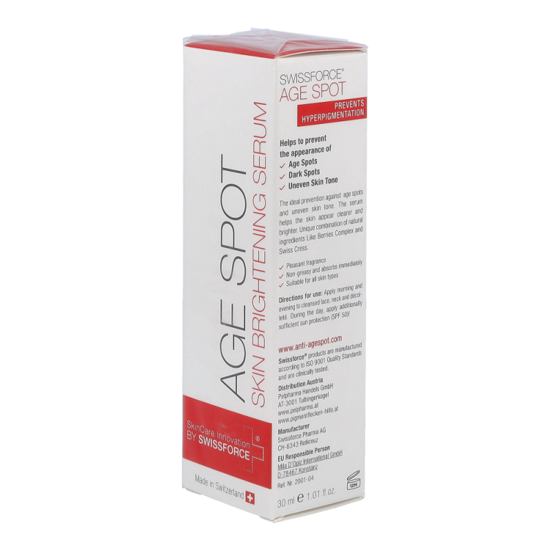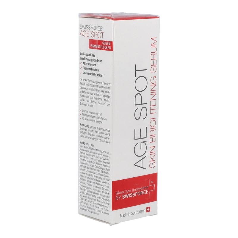 Age Spot aufhellendes Serum verbessert das Erscheinungsbild von Pigmentstörungen wie Altersflecken, dunklen oder braunen Flecken und anderen Unebenmäßigkeiten. Die einzigartige Wirkstoffkombination aus natürlichen Inhaltsstoffen schützt vor zukünftiger Pigmentbildung und lässt die Haut strahlender und ebenmäßiger wirken. Bietet außergewöhnliche Aufhellungserfolge und minimiert Altersflecken sowie Pigmentflecken.