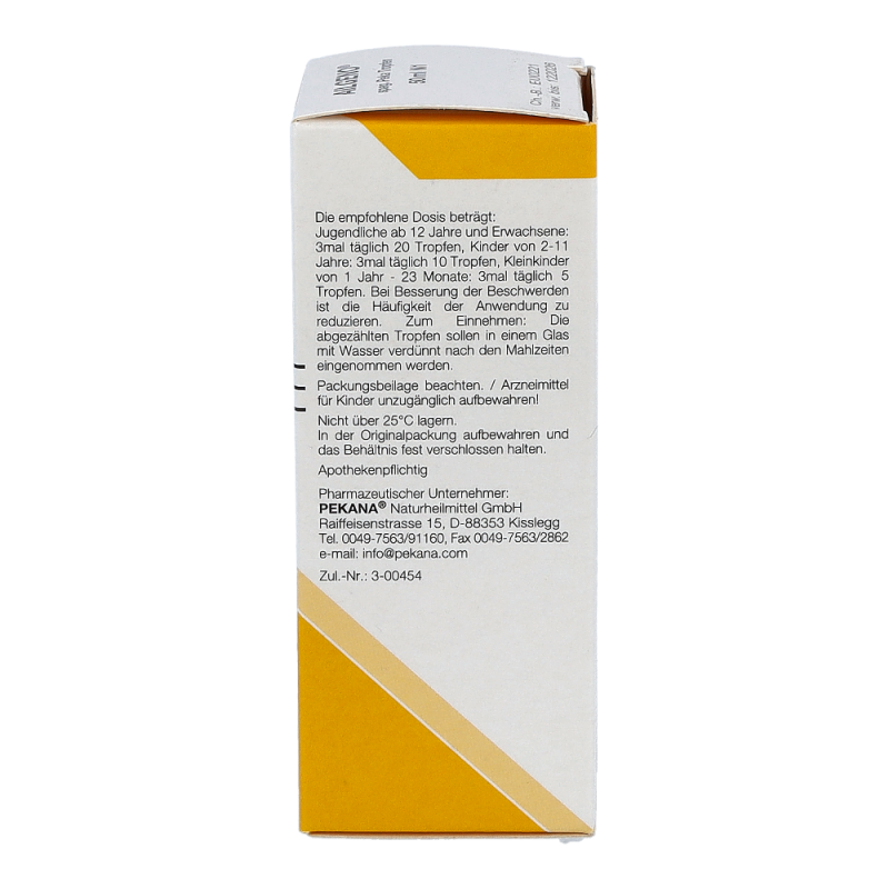 Personen ab 12 Jahren: 3mal tgl. 20 Tropfen.Kinder 2-11 Jahre: 3mal tgl. 10 Tropfen.Kinder ab 1 Jahr – 23 Monate: 3mal tgl. 5 Tropfen.Für Kinder < 1 Jahr nicht empfohlen.