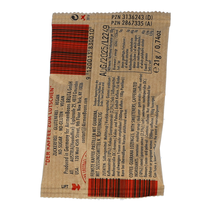 AirmenBeans Kaffee-Guarana Pastillen sind kleine Helfer, wenn’s mal etwas länger dauert, stressiger, nicht so spannend, oder so richtig Leistung gefragt ist. Natürlich aber auch nur zum Genießen.