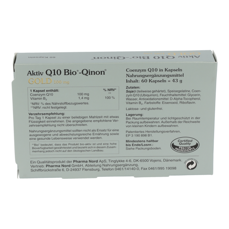 Aktiv Q 10 Bio-Quinon Gold Kapseln sind speziell entwickelte Kapseln, die das natürliche Coenzym Q10 ergänzt mit Vitamin B2 beinhalten. Durch den hochspezialiserten Produktionsprozess können die Q-10 Moleküle bei normaler Körpertemperatur aufgenommen werden und helfen dem Körper so Müdigkeit und schnelle Ermüdung zu verringern.