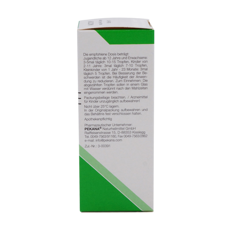 Personen ab 12 Jahren: 3-5mal tgl. 10-15 Tropfen.Kinder 2-11 Jahre: 3mal tgl. 7-10 Tropfen.Kinder ab 1 Jahr – 23 Monate: 3mal tgl. 5 Tropfen.Für Kinder < 1 Jahr nicht empfohlen.