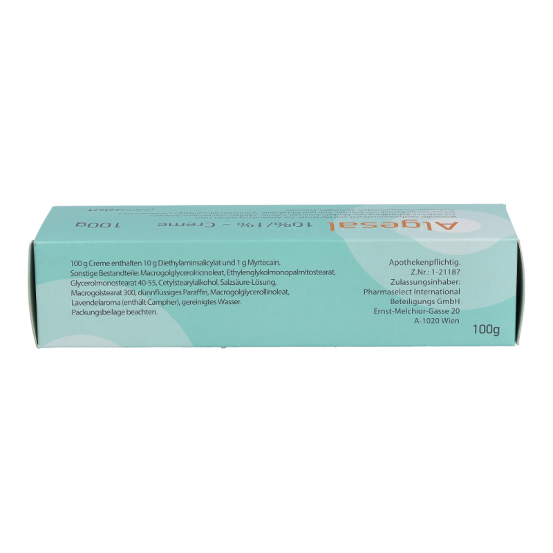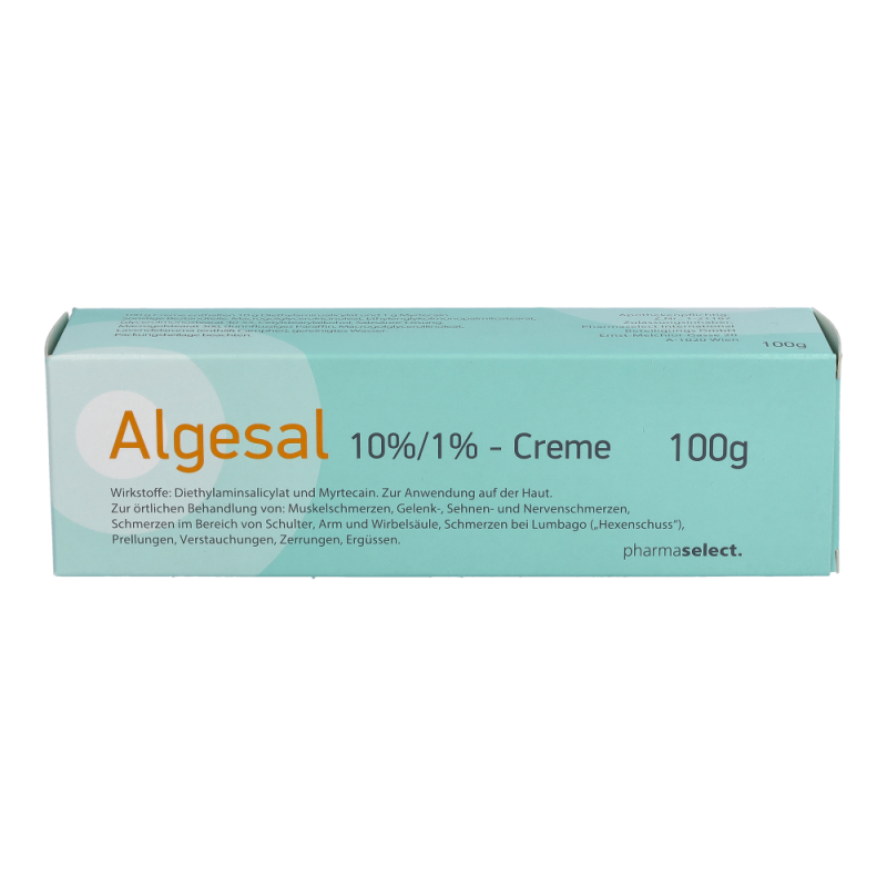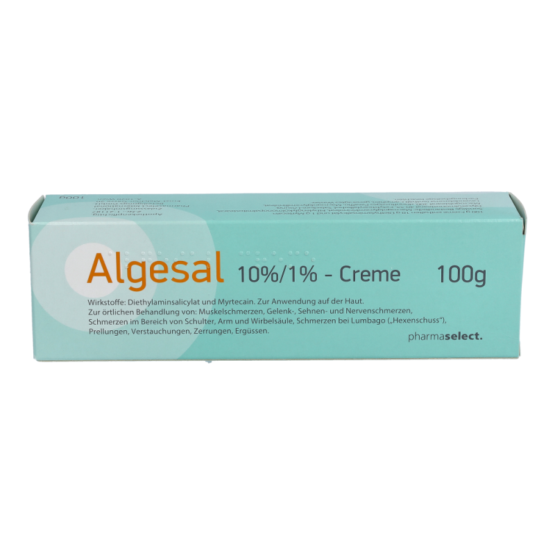 Algesal®, mit seiner einzigartigen Wirkstoffkombination, ist besonders rasch schmerzstillend und entzündungshemmend. Der Wirkstoff Myrtecain ist ein hochwirksames Lokalanästhetikum und reduziert rasch die Schmerzen. Dadurch entspannt sich die Muskulatur und wird besser durchblutet. Damit gelangt der zweite Wirkstoff besser an die betroffene Stelle und kann dort seine entzündungshemmende Wirkung gut entfalten.
