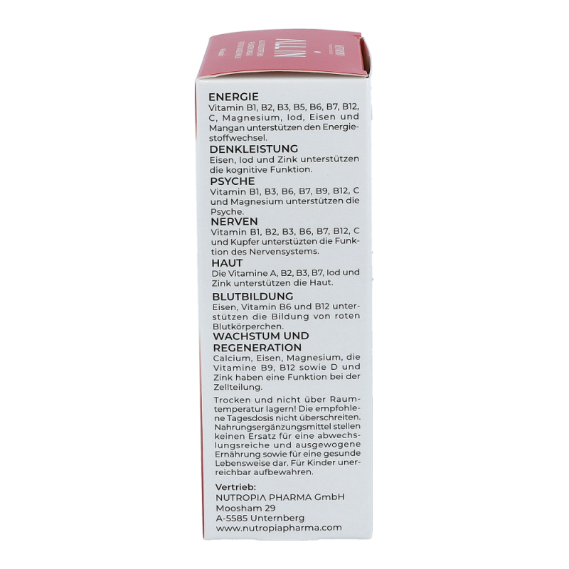 Vitamin B1, B2, B3, B6, B7, B12, Vitamin C und Kupfer tragen zu einer normalen Funktion des Nervensystems bei. Pantothensäure unterstützt die Bildung von Neurotransmittern.