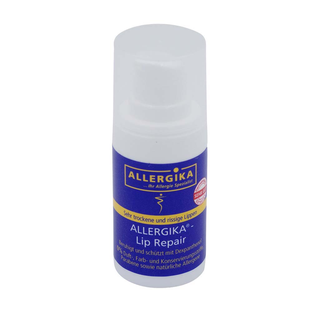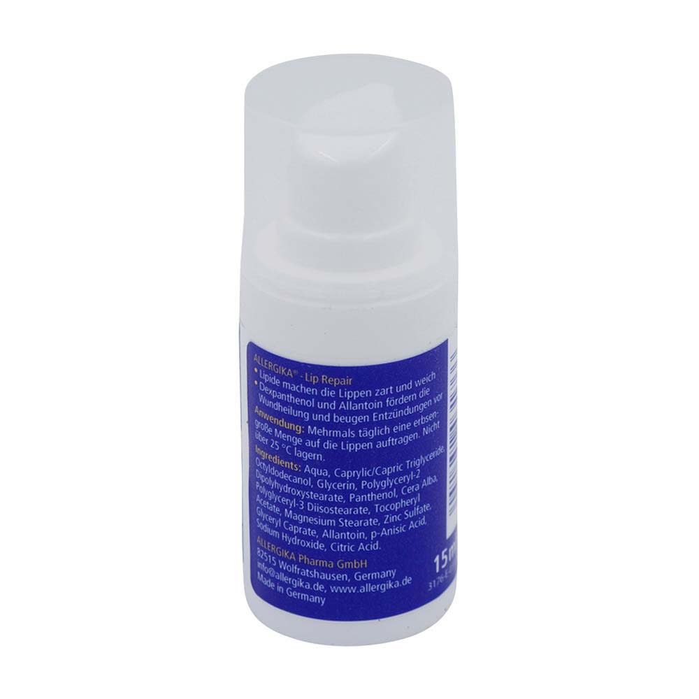 Allergika Lip Repair ist eine regenerierende, intensiv schützende Pflege bei trockenen, aufgesprungenen Lippen und eingerissenen Mundwinkeln. Lipide machen die Lippen zart und weich. Dexpanthenol und Allantoin fördern die Wundheilung und beugen Entzündungen vor.
