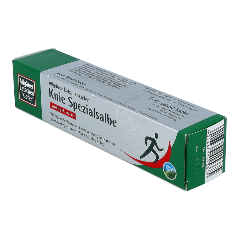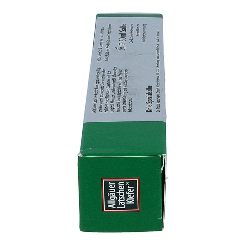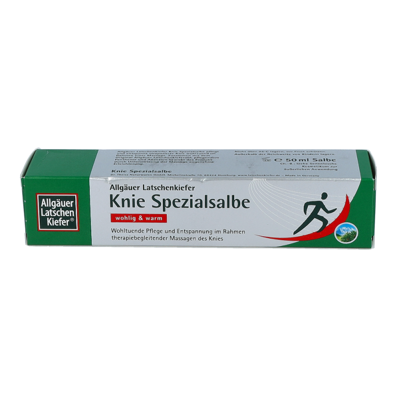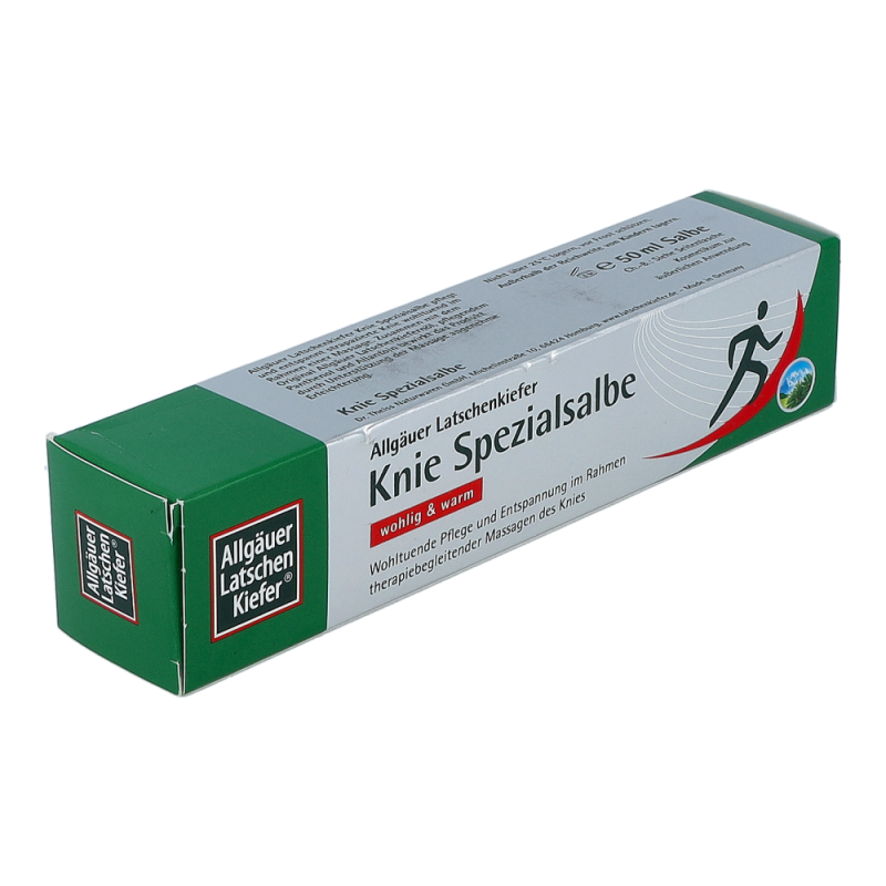Allgäuer Latschenkiefer Knie Spezialsalbe 50 ml pflegt und entspannt strapazierte Knie. Sie wirkt besonders wohltuend im Rahmen einer Massage. Zusammen mit der Allgäuer Wärmeformel, Original Allgäuer Latschenkiefernöl, pflegendem Panthenol und Allantoin wird die Erleichterung spürbar – jetzt online bestellen und versandkostenfreie* Lieferung nutzen!