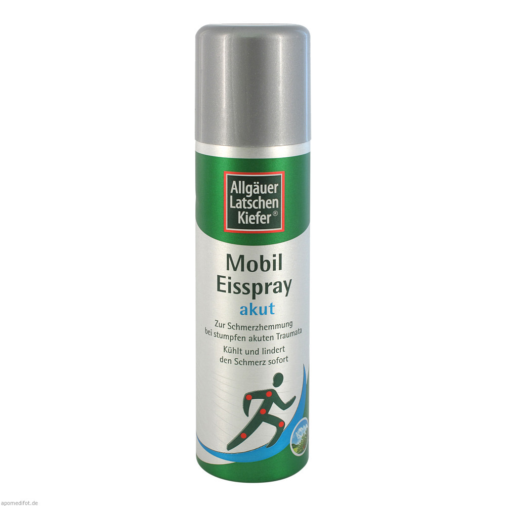 Allgäuer Latschenkiefer Mobil Eisspray dient zur Schmerzhemmung bei stumpfen akuten Traumata. Das physikalisch wirkende Lokalanästhetikum kühlt und lindert den Schmerz sofort. Für stumpfe, geschlossene Verletzungen wie Zerrungen, Prellungen und Verstauchungen.