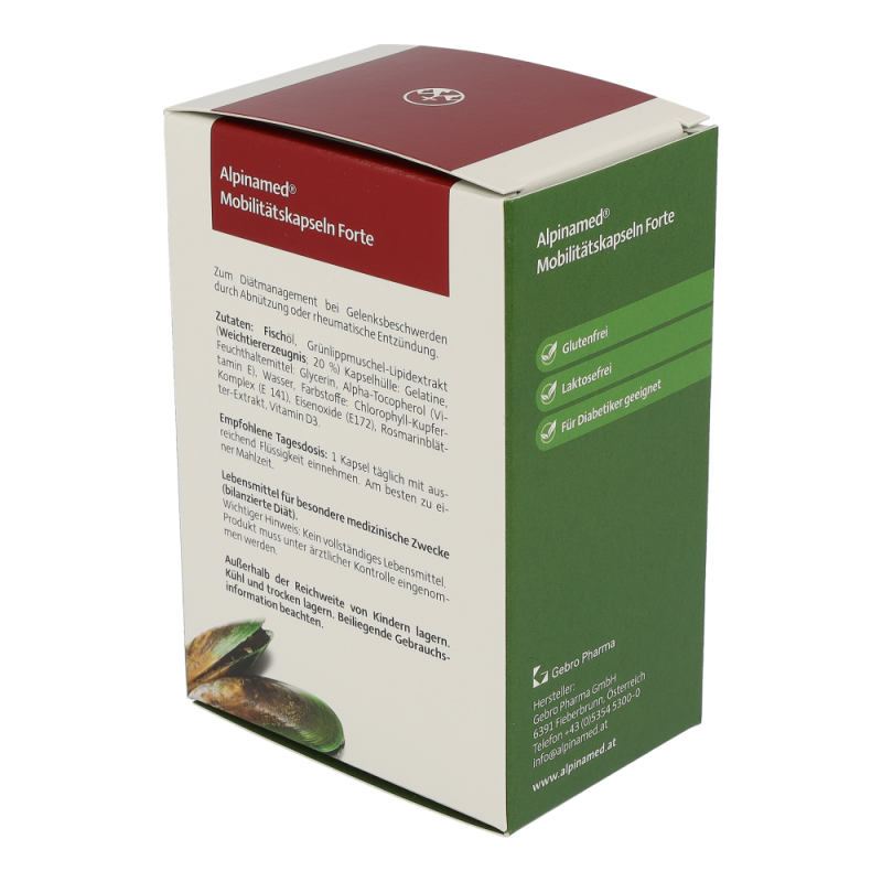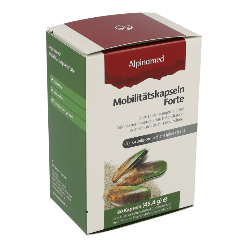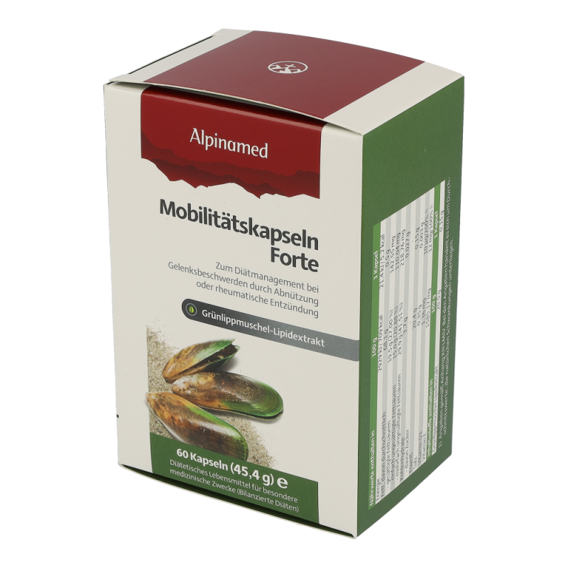 Alpinamed Mobilitätskapseln Forte werden angewendet zur diätetischen Behandlung von Gelenksbeschwerden durch Abnützung oder rheumatische Entzündung. Die Kapseln verringern Beschwerden und Entzündungszeichen in den Gelenken. Zudem bewirken sie bessere Beweglichkeit und geringere Morgensteifigkeit.