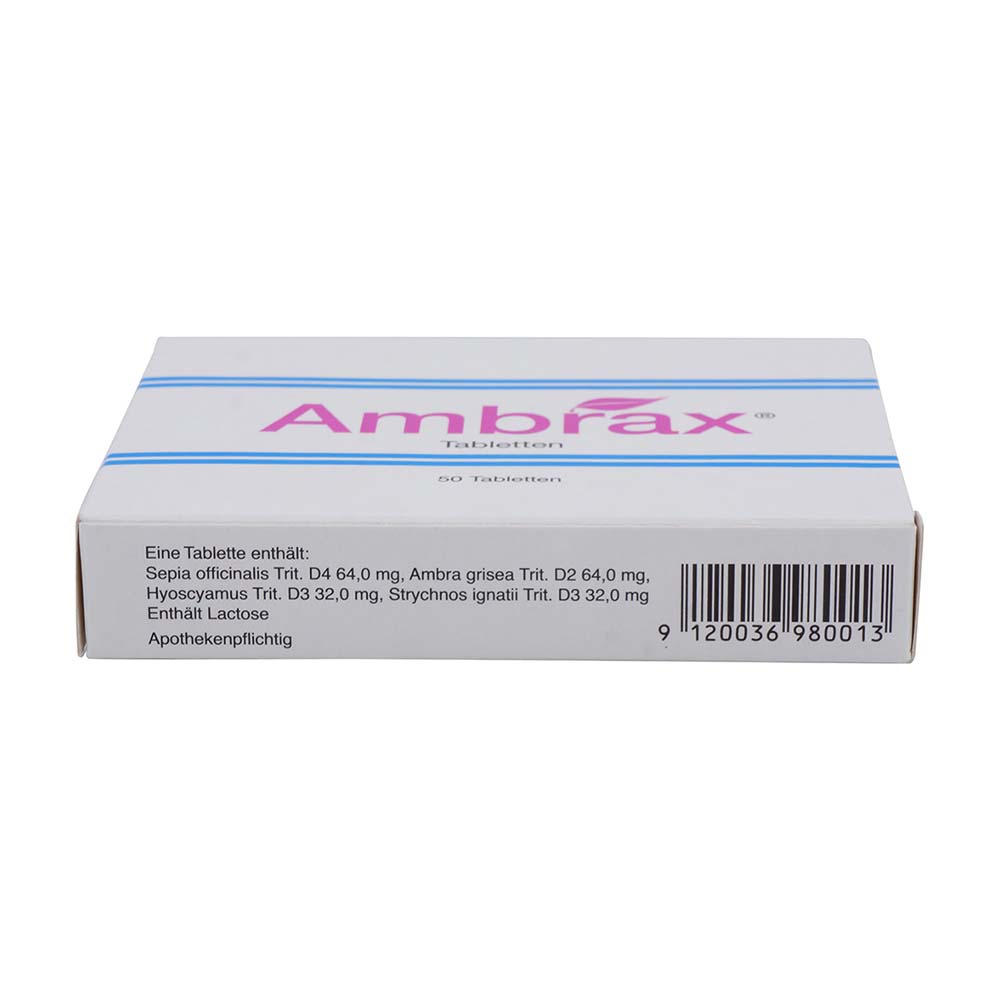 Ambrax® Tabletten entspannen und reduzieren die kräftezehrenden Auswirkungen nervöser Störungen ohne Tagesmüdigkeit zu verursachen. Größere Gelassenheit führt dazu, dass unsere Gedanken nicht immer um die gleichen Dinge kreisen und wir abschalten können. Ruhiger, erholsamer Schlaf in der Nacht gibt dem Körper die nötige Energie und Kraft zurück. Die einzigartige Wirkstoffkombination aus Sepia und Ambra, dem Bilsenkraut und der Ignatiusbohne machen AMBRAX® zu einem gut verträglichen, homöopathischen Arzneimittel..