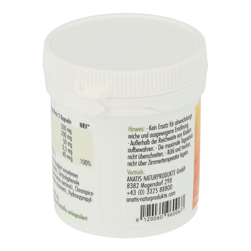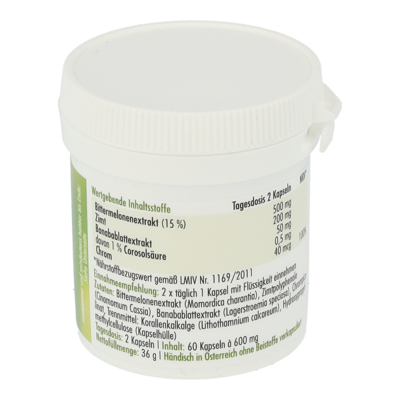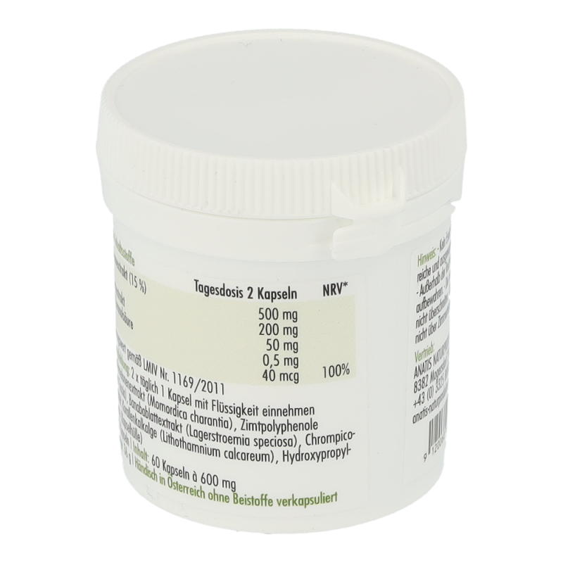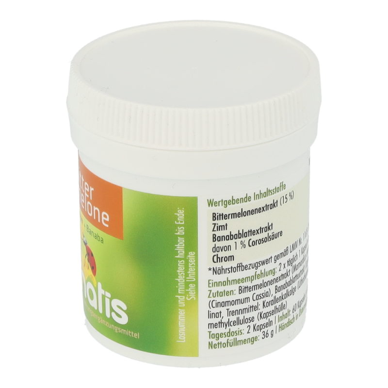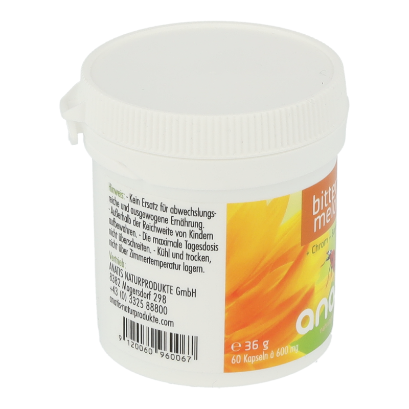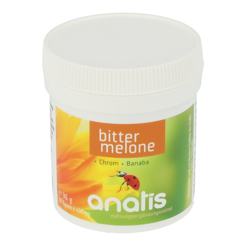 Anatis Bittermelonen Kapseln sind ein Nahrungsergänzungsmittel mit dem Frucht-Extrakt der Bittermelone erweitert mit Zimtexktrakt und Chrom. Bittermelone gilt als einer der Gründe für geistige und körperliche Fitness bis ins hohe Alter. Chrom trägt zu einem normalen Stoffwechsel von Makronährstoffen sowie zur Aufrechterhaltung eines normalen Blutzuckerspiegels bei.