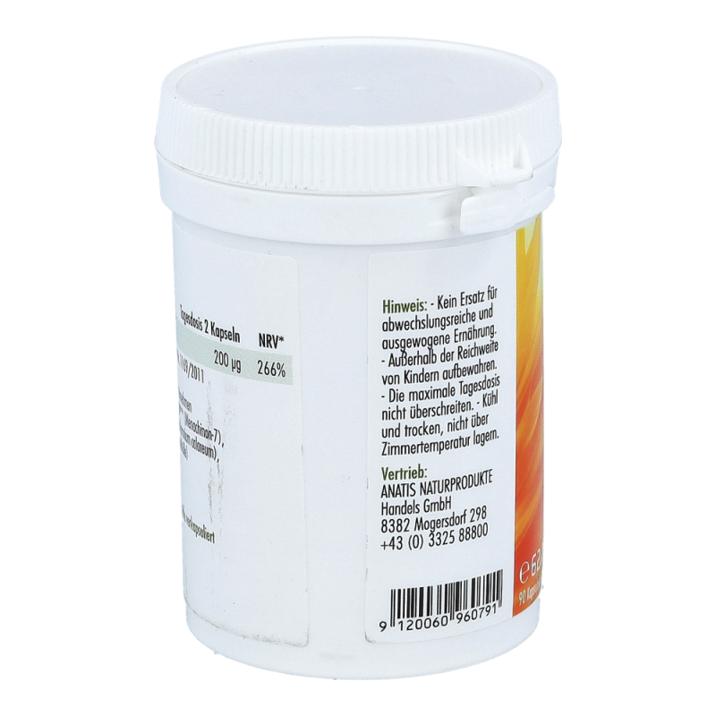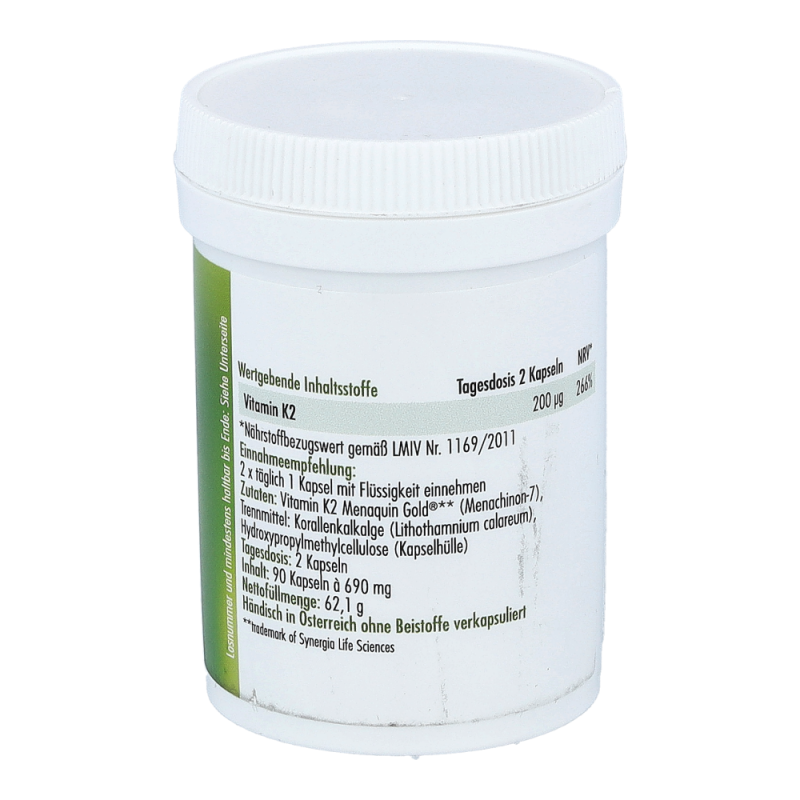 Vitamin K2 unterstützt die normale Blutgerinnung und fördert die Erhaltung gesunder Knochen.