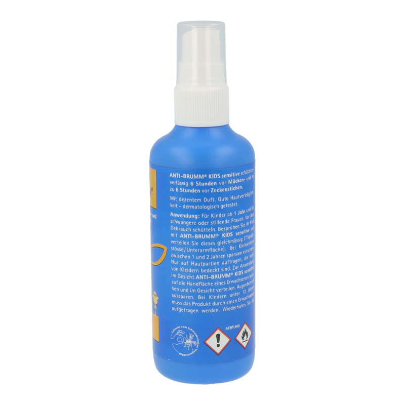 Anti Brumm Kids: Sicherer Schutz für die Kleinen. Gerade Kinder halten sich gerne viel im Freien auf. Sie streben danach, Wälder, Wiesen und Berge zu erkunden und zu entdecken – im Urlaub, wie auch Zuhause. Damit das Naturerlebnis nicht zur Tortur wird, ist eine geeignete Insektenabwehr das A und O. Anti Brumm Kids sorgt für langanhaltenden Schutz gegen Zecken und einheimische und tropische Mücken und besitzt eine aussergewöhnlich gute Hautverträglichkeit. Dank seiner speziellen Zusammensetzung bietet Anti Brumm Kids Schutz vor Mücken von bis zu 8 Stunden und Schutz vor Zecken von bis zu 5 Stunden.