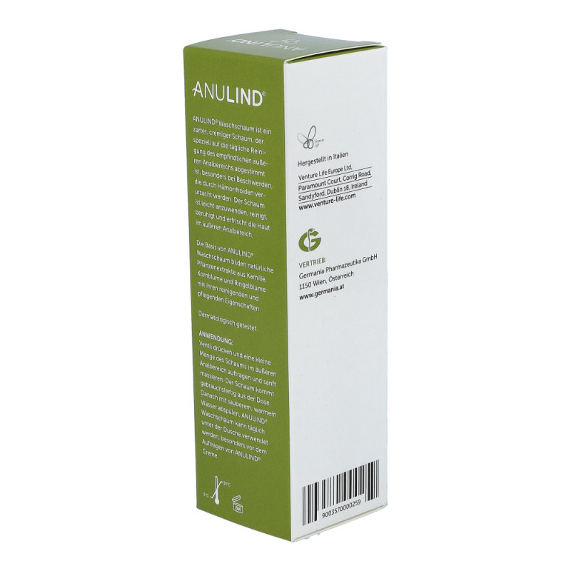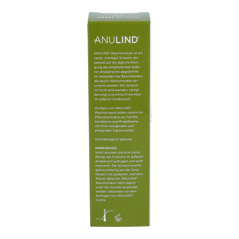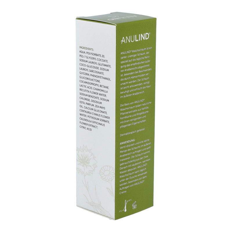 ANULIND Cleanser ist ein zarter, cremiger Schaum, der als ideale Reinigung für den empfindlichen äußeren Analbereich und besonders für die Anwendung bei schmerzenden Hämorrhoiden geeignet ist und natürliche Extrakte von Kamille, Ringelblume und Kornblume beinhaltet. Das Produkt ist leicht anzuwenden und reinigt, beruhigt und erfrischt die Haut