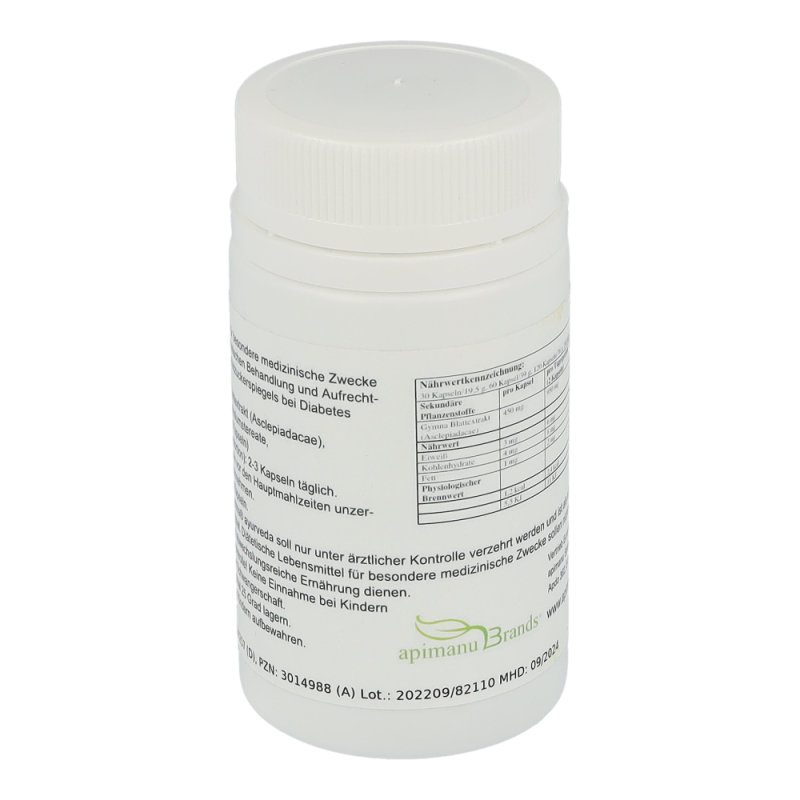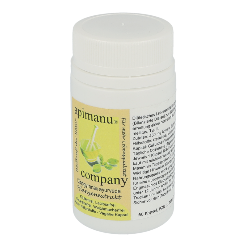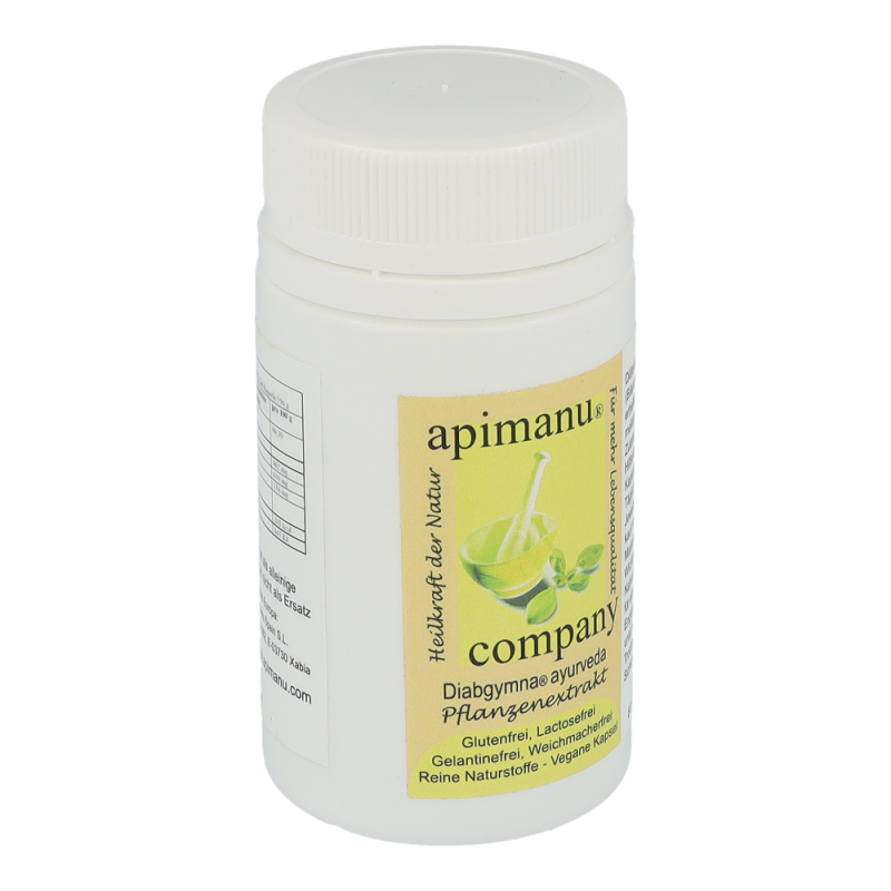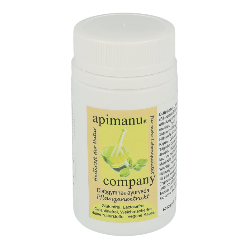 Apimanu Ayurveda Kapseln Diabgymna wird aus den Blättern der Gymnapflanze durch ein sehr aufwendiges Trocknungs- und Herstellungsverfahren gemäß der uralten Ayurveda-Heilkunde hergestellt. Klinische Tests haben gezeigt, dass der Blutzucker bei einem Diabetiker unterstützend durch diese Kapseln reduziert und stabil gehalten werden kann.