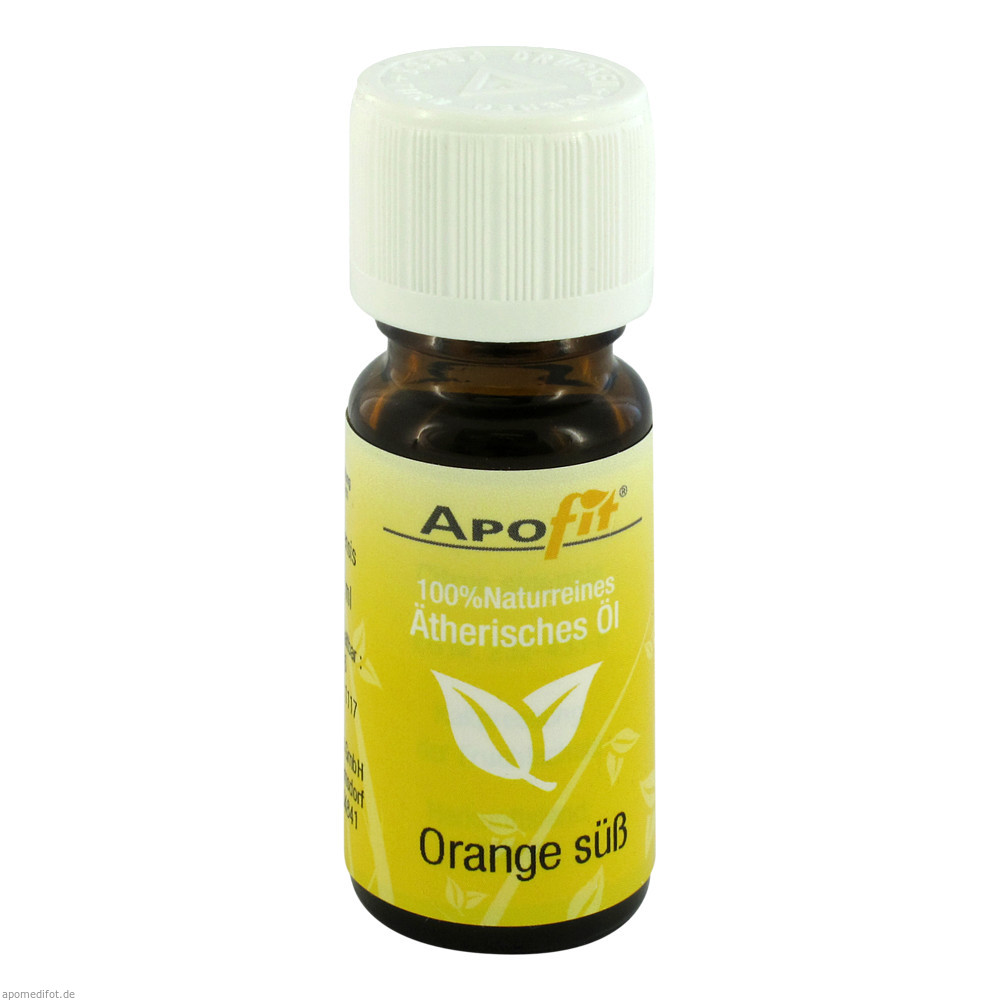 Apofit Ätherisches Öl Orange Süß macht die Haut weich und fördert die Durchblutung. In einer Massageölmischung mit Zypresse ist Orange sehr hilfreich bei Cellulite. Der Duft ist erfrischend und warm und sehr beliebt. Wirkt harmonisierend und erheiternd. Orangenöl ist zudem hervorragend zum Aromatisieren von Speisen geeignet. Nicht zur Einnahme bestimmt!.