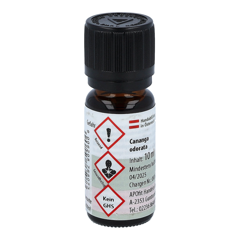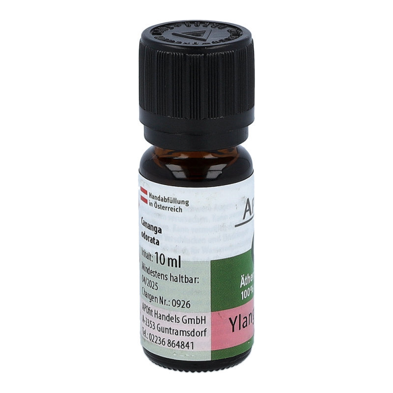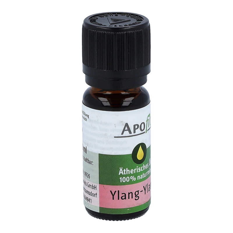 Apofit Ätherisches Öl Ylang-Ylang senkt zu hohen Blutdruck und die Atemfrequenz. Es ist deshalb hilfreich bei Wutausbrüchen, Zorn und Ärger. Auch bei Stimmungsschwankungen vor der Menstruation hat es sich vielfach bewährt. Es findet Verwendung bei Bädern, Massageölen und in der Duftlampe. Nicht zur Einnahme bestimmt!.