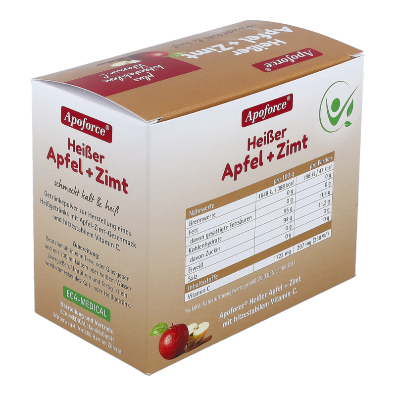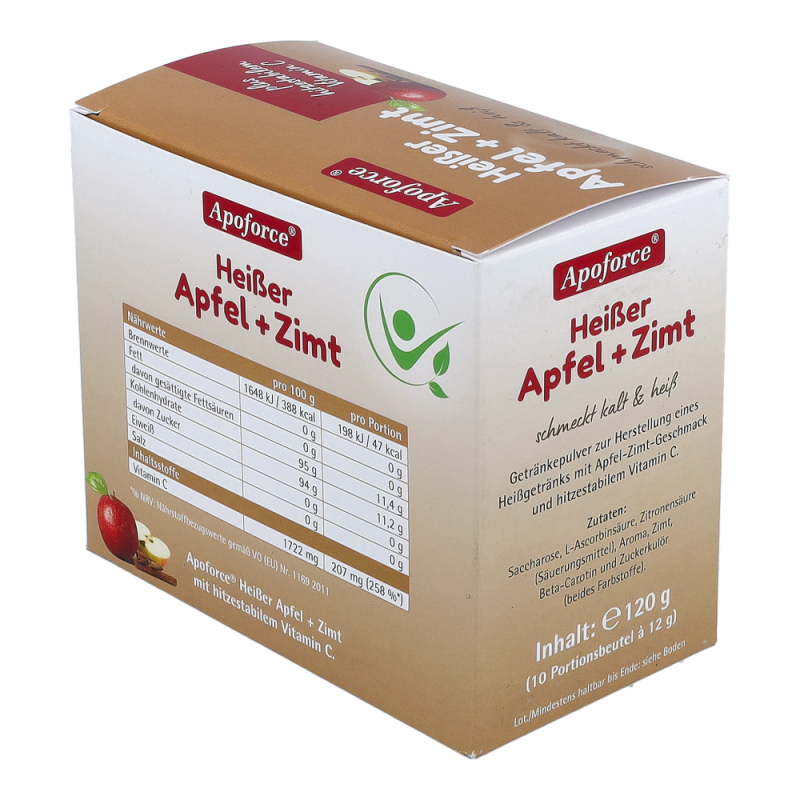 Apoforce Apfel-Zimt mit hitzestabilem Vitamin C wärmt von innen und verleiht ein angenehmes Gefühl.