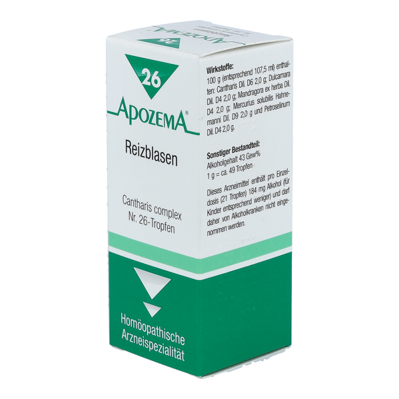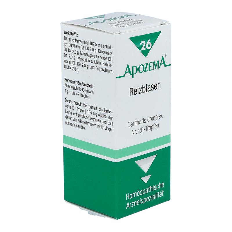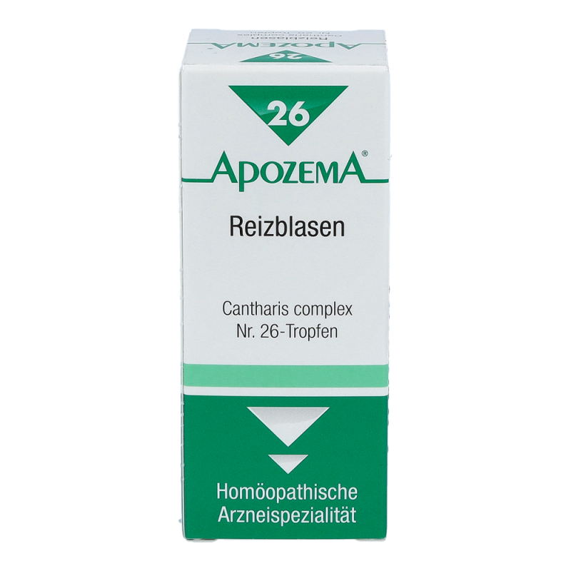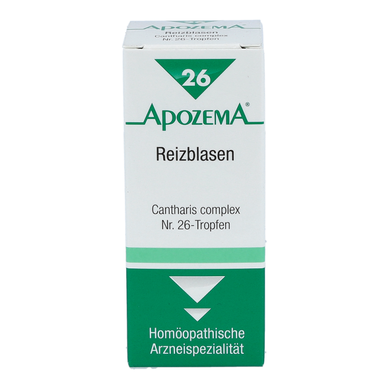 APOZEMA Reizblasen Tropfen Nr. 26 von APOMEDICA regen die Selbstheilungskräfte gemäß dem homöopathischen Arzneimittelbild bei Reizblase, Harnröhren- und Blasenkatarrh, Blasenschwäche und Harnträufeln an.