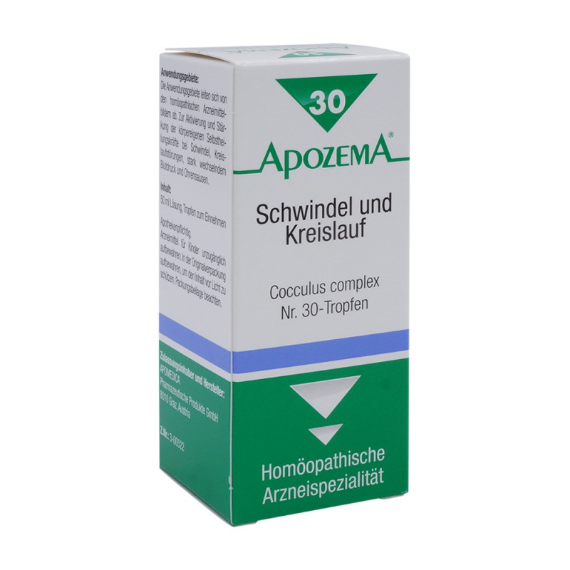 APOZEMA Schwindel- und Kreislauf-Tropfen Nr. 30 von APOMEDICA regen die Selbstheilungskräfte gemäß dem homöopathischen Arzneimittelbild bei Schwindel, Kreislaufstörungen, stark wechselndem Blutdruck und Ohrensausen an.