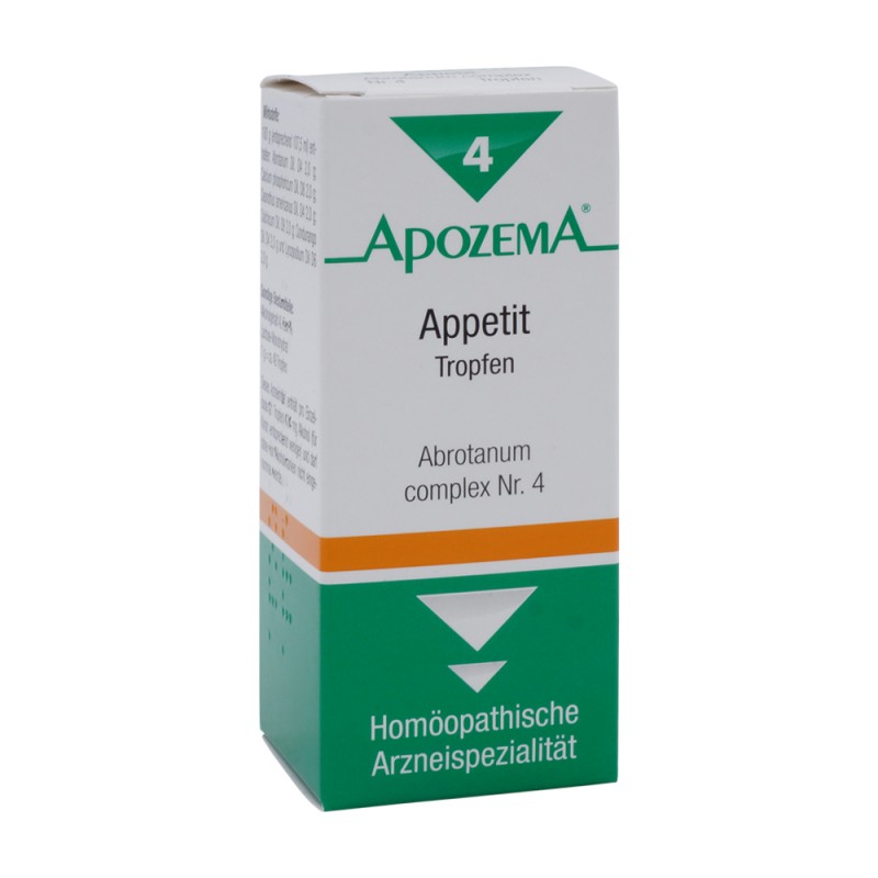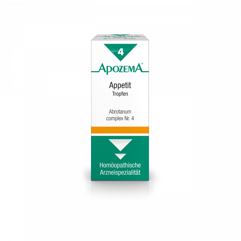 APOZEMA Appetit Tropfen Nr. 4 von APOMEDICA regen die Selbstheilungskräfte gemäß dem homöopathischen Arzneimittelbild bei Appetitstörungen von Kindern und Erwachsenen, im Alter und in der Genesungsphase nach Krankheiten, Verdauungsstörungen und Beschwerden in Magen und Darm an.