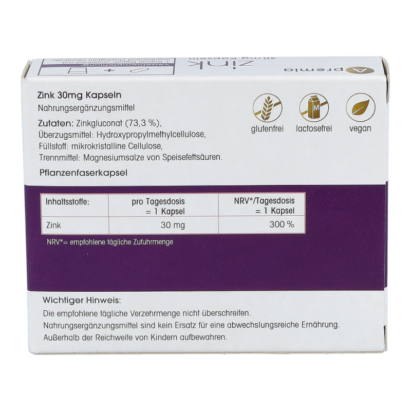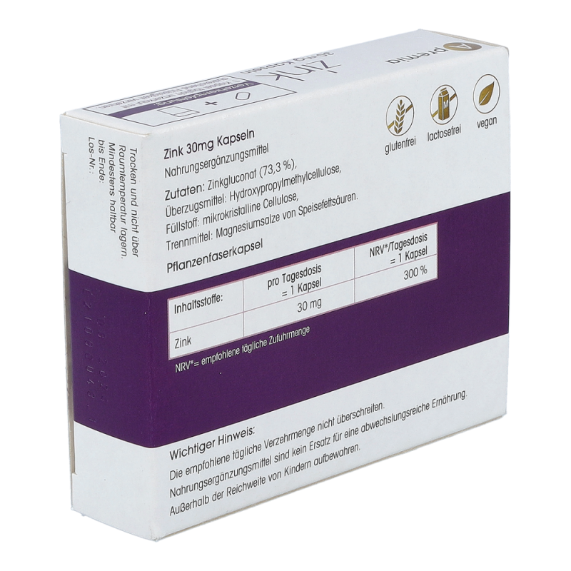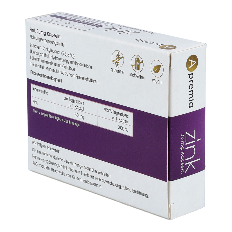 Apremia Zink 30 mg Kapseln tragen zu einer normalen Fruchtbarkeit und Reproduktion bei, aber auch zur normalen Funktion des Immunsystems.