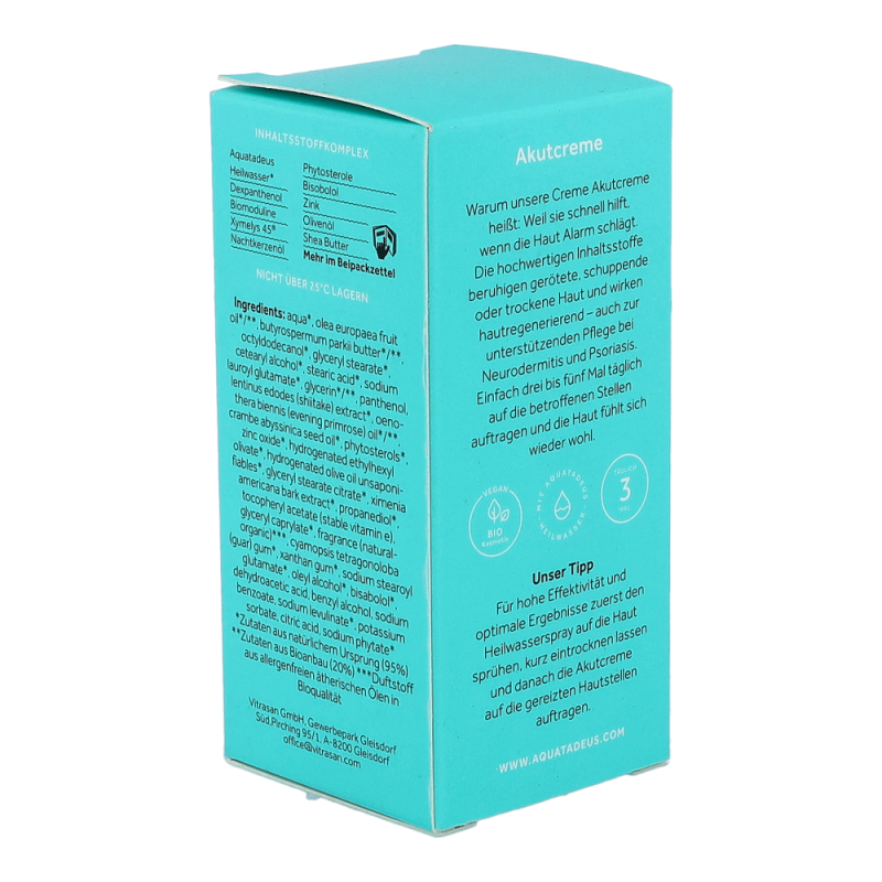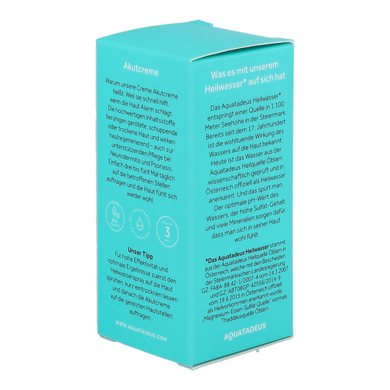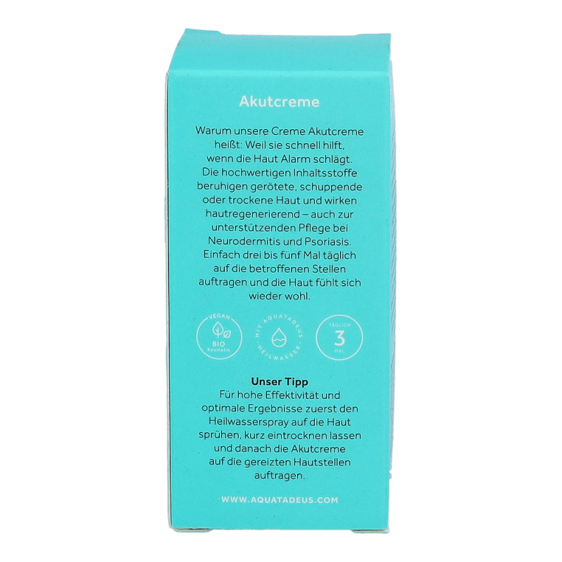 Um bestmögliche Effekte zu erzielen, kombiniere die Akutcreme mit dem Aquatadeus Heilwasser*.