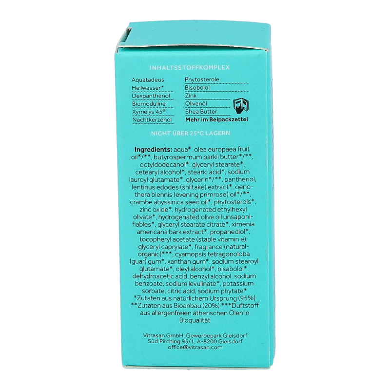 Für die raschen Effekte sorgen Aquatadeus Heilwasser*,Defensil® plus (Johannisbeersamenöl, Ballonrebenextrakt,Sonnenblumenöl) und der innovative 4-fach-Komplex aus Nachtkerzenöl (Gamma-Linolensäure), Bisabolol, Dexpanthenol und Zink. Dazu kommen noch reines Oliven- und Mandelöl, die der Haut besonders gut tun. Für den angenehmen Duft ist übrigens der Benzoebaum verantwortlich.Dieser liefert ein wertvolles Harz, das unserer Akutcreme die weiche, leicht schokoladige Honignote gibt.