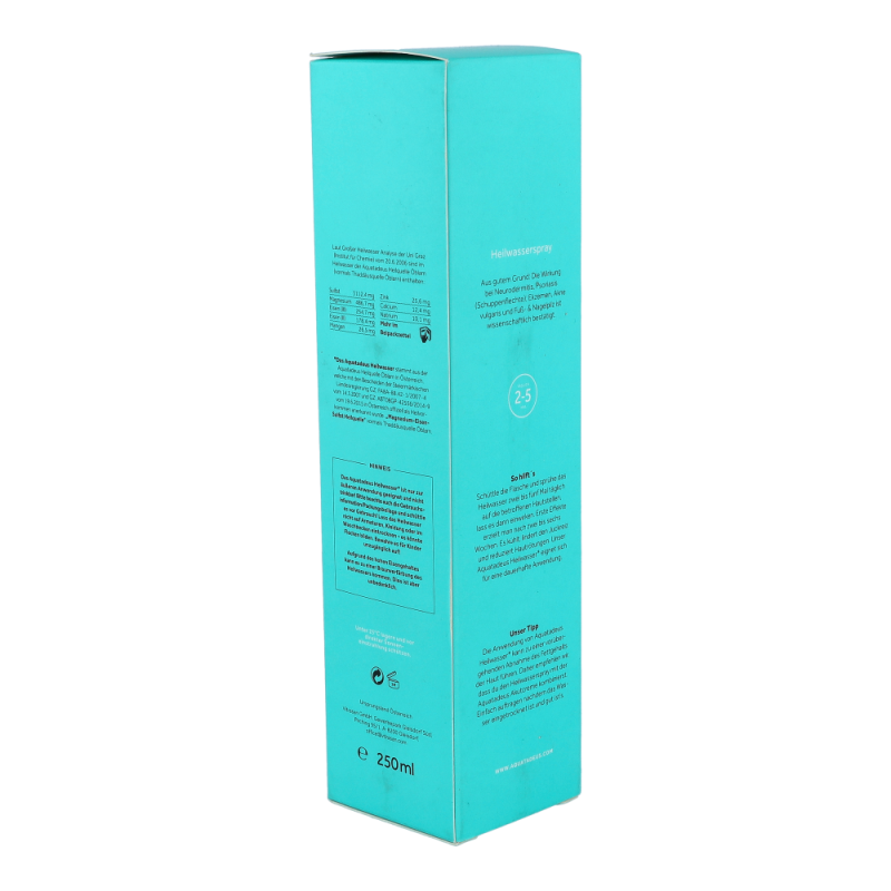 Natürliche Heilkraft bei entzündlichen und infektiösen Hauterkrankungen. Das Heilwasser ist reizlindernd und entzündungshemmend und erhöht den Feuchtigkeitsgehalt der Haut. Zudem lindert es Juckreiz, reduziert Rötungen und kühlt angenehm.