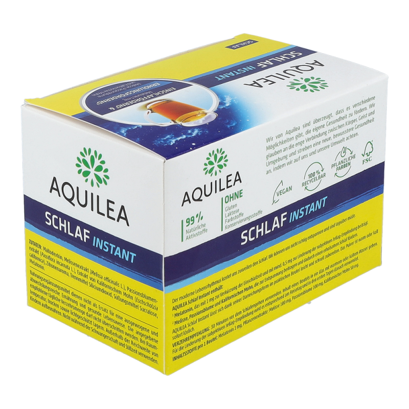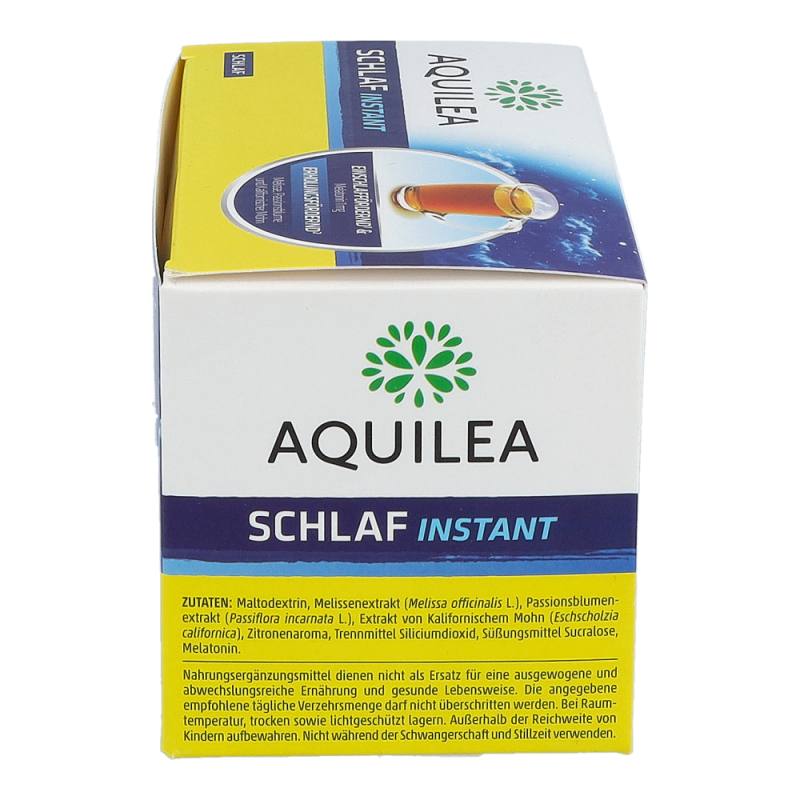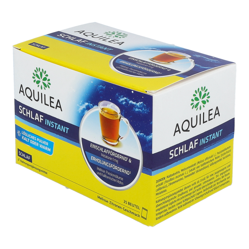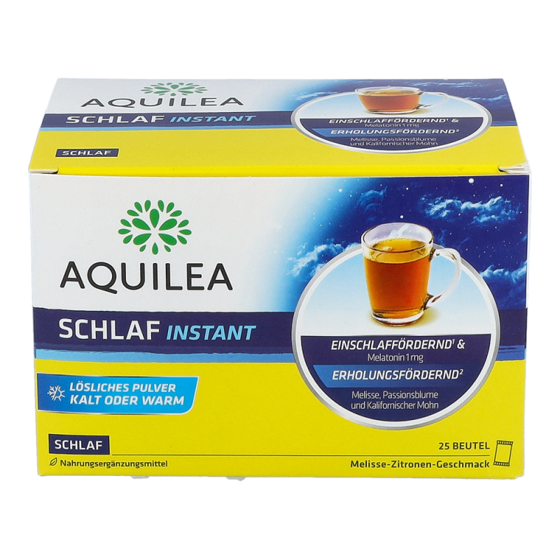Aquilea hat dafür Schlaf Instant mit Melatonin entwickelt, ein gut lösliches Pulver, das den Schlaf verbessert: Mit 1 mg Melatonin verkürzt es die Einschlafzeit und mit mindestens 0,5 mg lindert es das subjektive Jetlag-Empfinden.