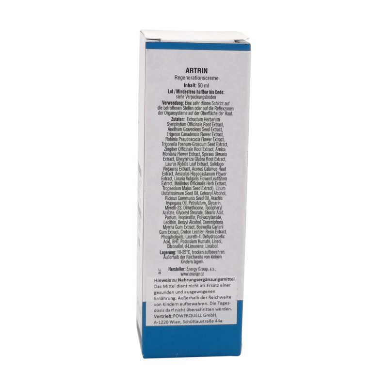 Artrin Kräuterextrakt Creme kann den Körper bei der Harmonisierung der Meridiane Nieren, Harnblase, Leber, Milz und Magen unterstützen. Die Creme beinhaltet 15 verschiedene Kräuterextrakte und ist zur äußerlichen Anwendung bestimmt.