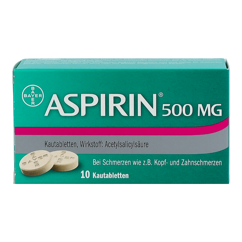 Aspirin Kautabletten von Bayer können ohne Flüssigkeit bei Schmerzen und Fieber eingenommen werden und eignen sich ideal für unterwegs. Eine Tablette enthält 500 mg Acetylsalicylsäure und sogenannte Pufferstoffe, die die Löslichkeit des Wirkstoffes verbessern, damit dieser den Magen rasch passieren und schnell zum Wirkort gelangen kann.