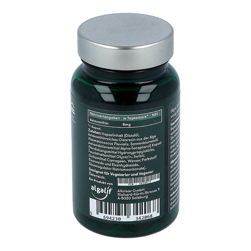 Enthält Astalif® ein luftdicht verkapseltes natürliches Astaxanthinreiches Oleoresin aus der Alge Haematococcus Pluvialis in veganer SeaGel® Kapsel.