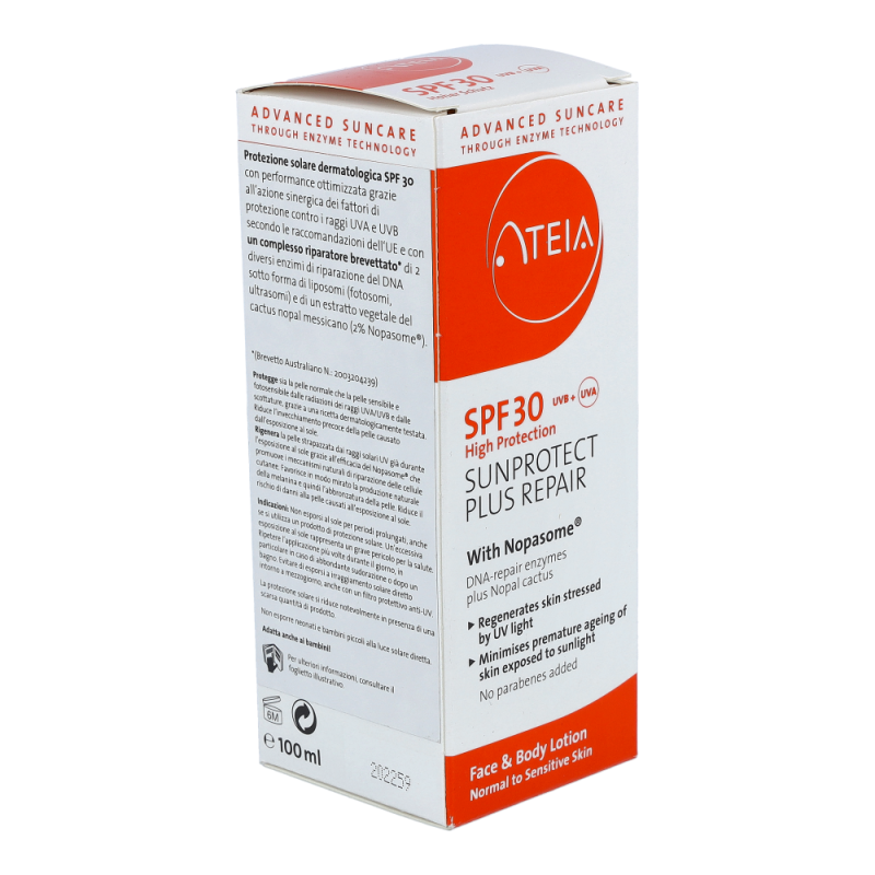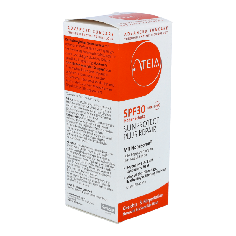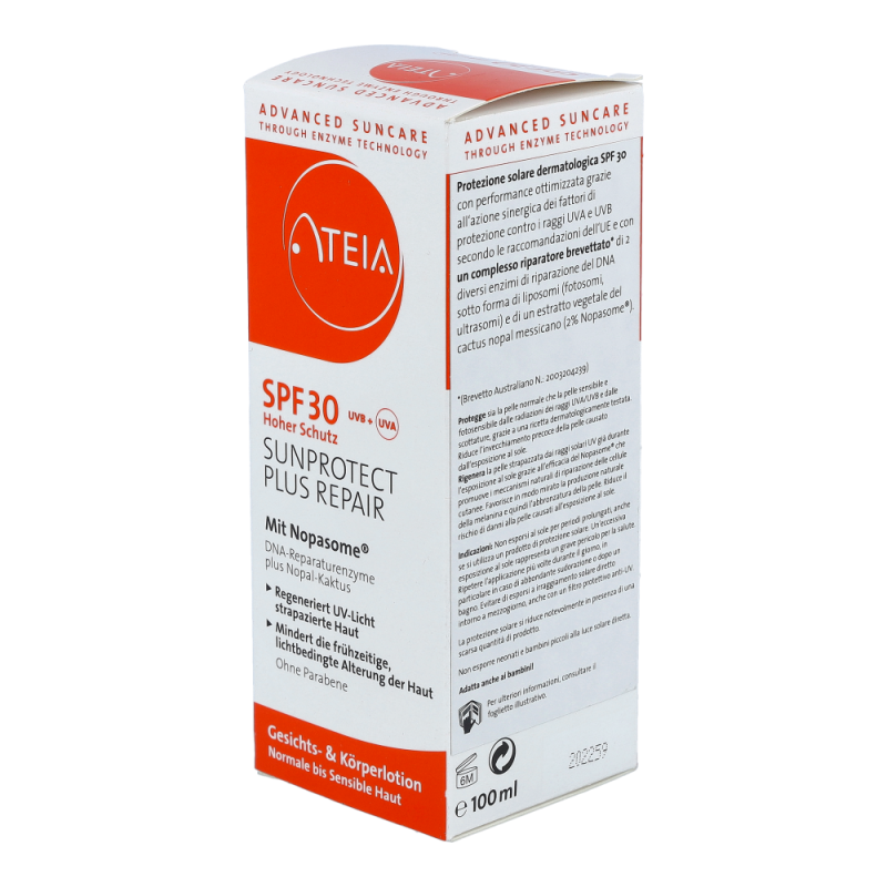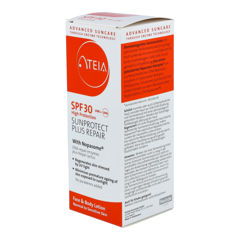 ATEIA® SPF 30 SUNPROTECT PLUS REPAIR, 2% Nopasome® – Gesicht & Körper Lotion, für Normale bis Sensible Haut