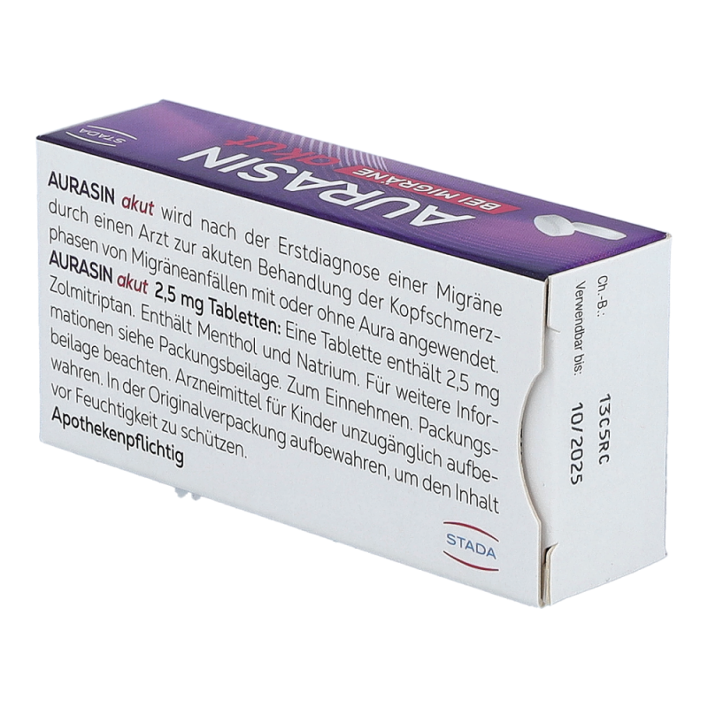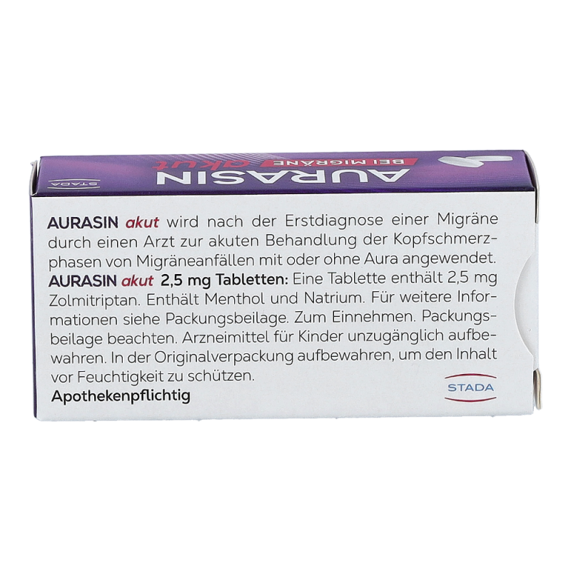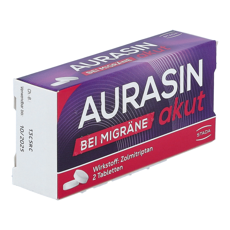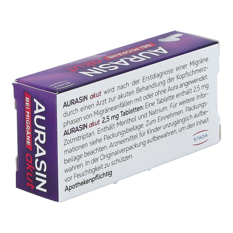 Aurasin akut ist das erste rezeptfreie Migränemittel Österreichs mit dem Wirkstoff Zolmitriptan, der zur Wirkstoffgruppe der Triptane zählt und die Erweiterung der Blutgefäße bei einem Migräneanfall reduziert.