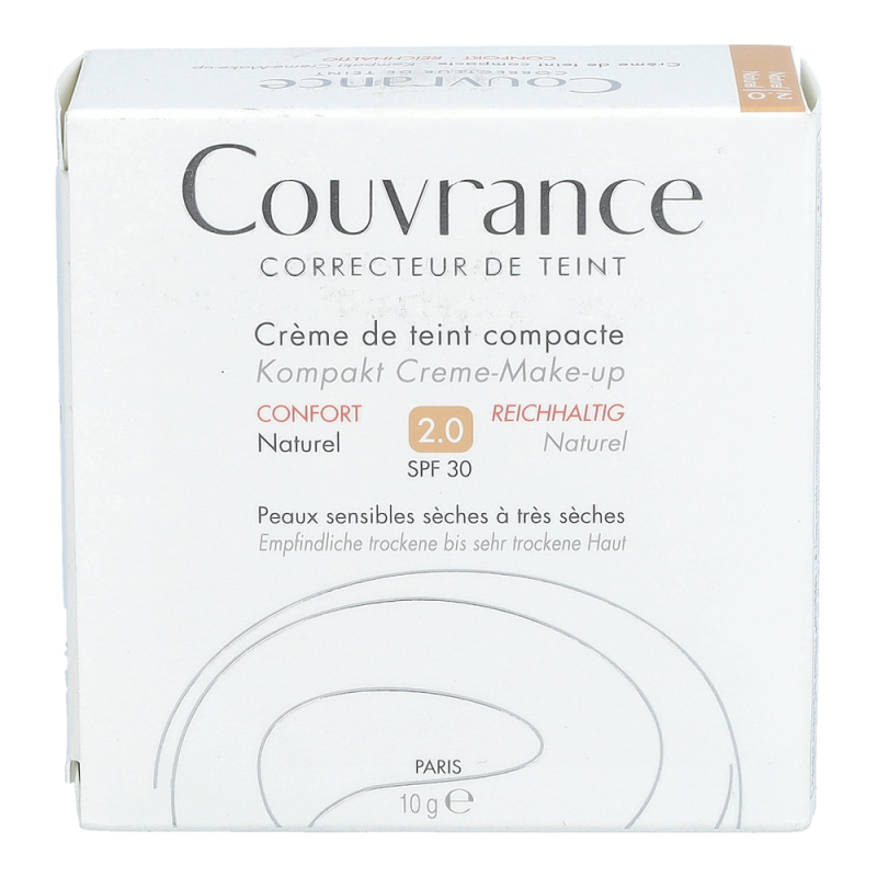 Das Couvrance Kompakt Creme-Make-up Naturel sorgt für ein ebenmäßiges Hautbild bei empfindlicher, heller Haut und kaschiert starke Hautunregelmäßigkeiten effektiv. Dank der samtig-weichen und angenehmen Textur sorgt das Make-up den ganzen Tag über für einen perfekten Halt, ohne Maskeneffekt.