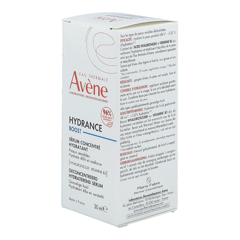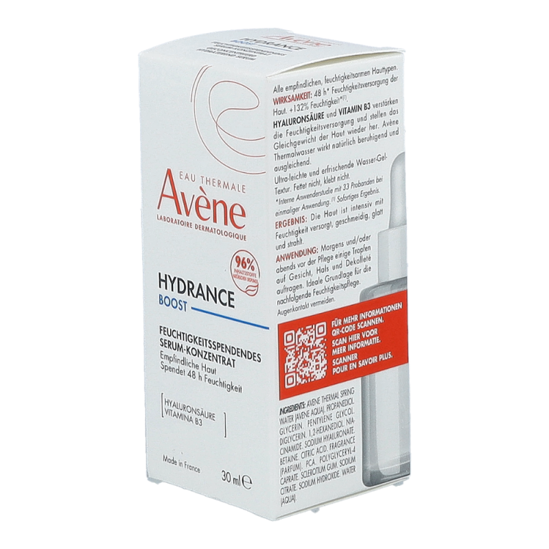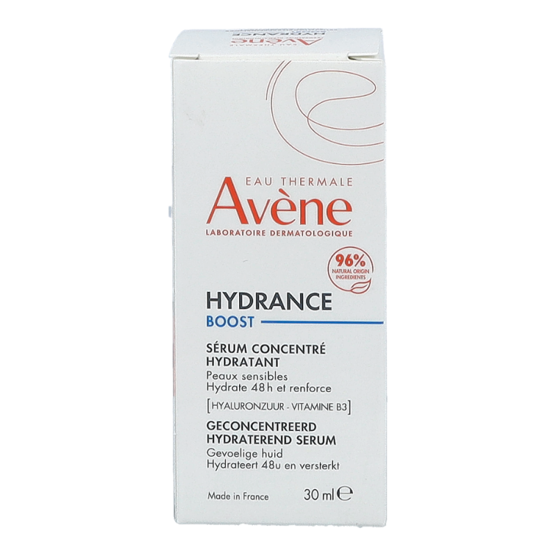 Dieses Serum ist ein echter Feuchtigkeitsbooster für das Gesicht. Es wirkt 48 Stunden* lang und bringt feuchtigkeitsarme, empfindliche Haut wieder ins Gleichgewicht. Seine Formulierung ist reich an Hyaluronsäure und Vitamin B3 (Niacinamide) und besteht zu 96 % aus natürlichen Inhaltsstoffen. Es hat eine frische, nicht fettende, nicht klebende, ultraleichte Gel-Wasser-Textur. Es zieht sofort ein und hinterlässt ein angenehmes Feuchtigkeitsgefühl auf der Haut. Hydrance BOOST Serum erhöht den Feuchtigkeitsgehalt der Haut und sorgt für eine glatte, belebte, gesund aussehende Haut. Sie gewinnt an Komfort, Weichheit und Geschmeidigkeit zurück.