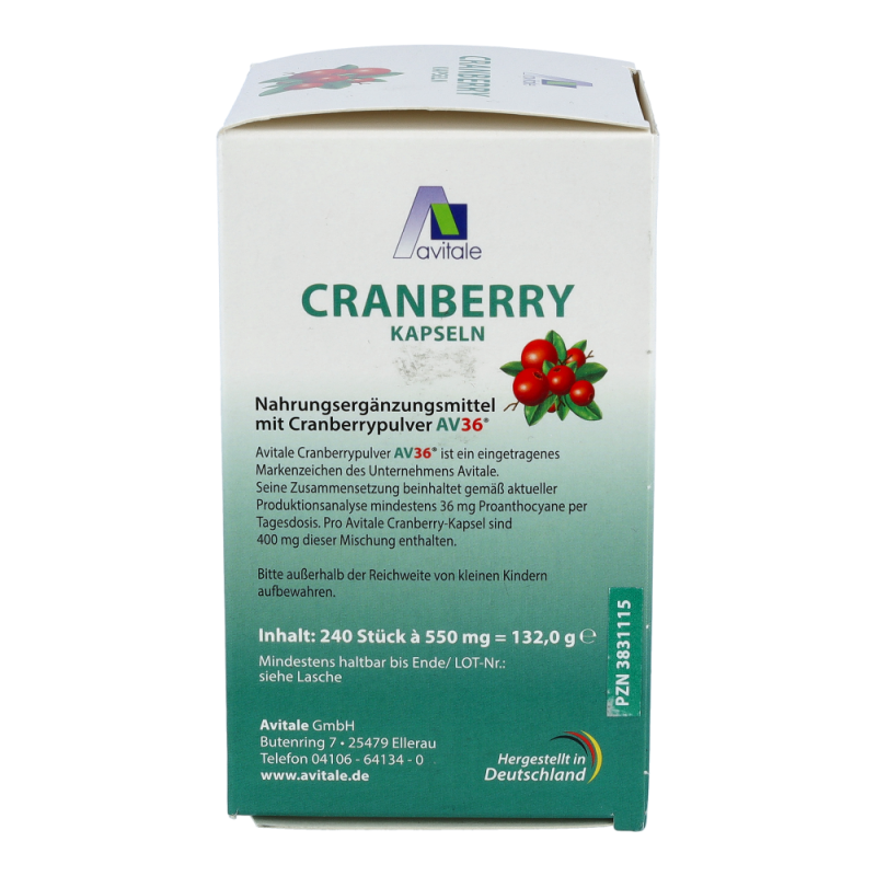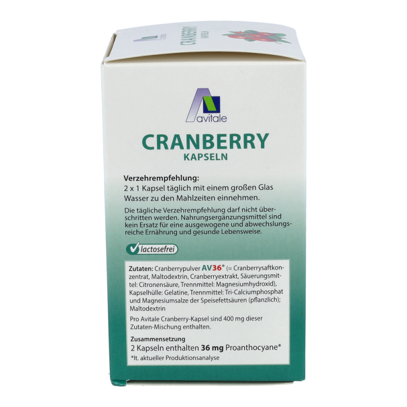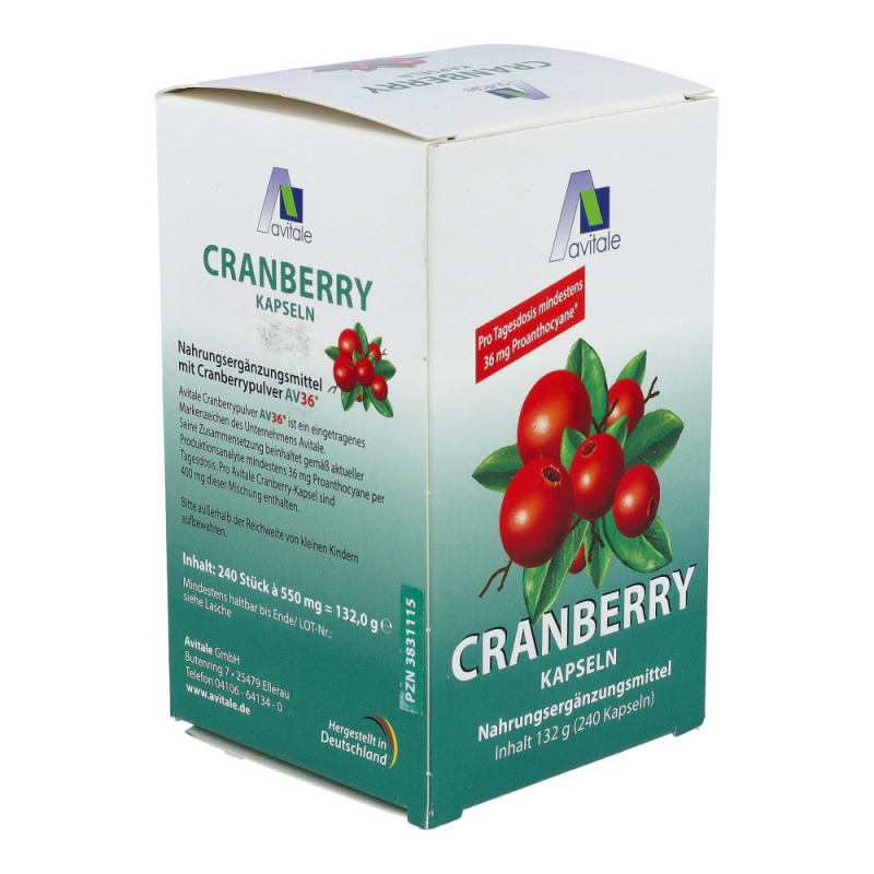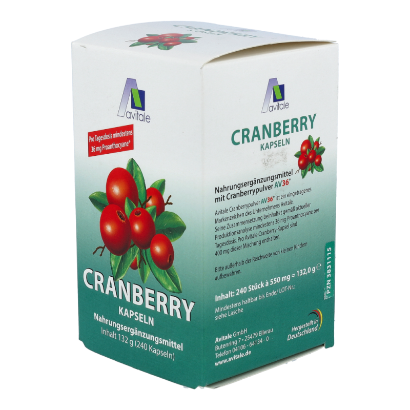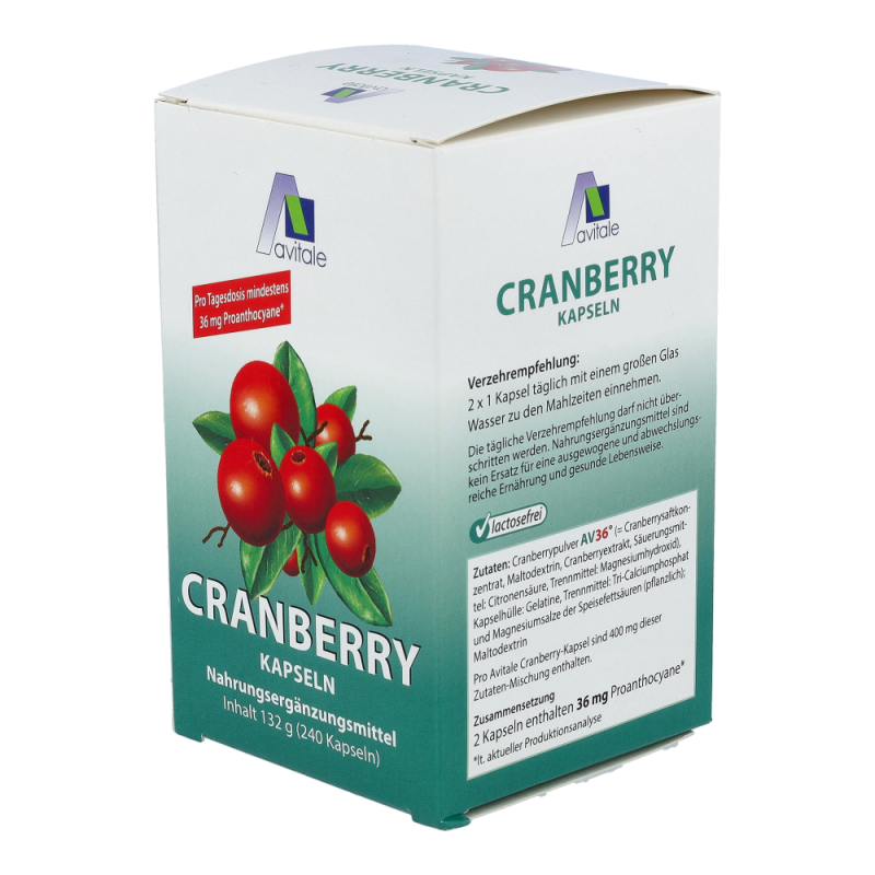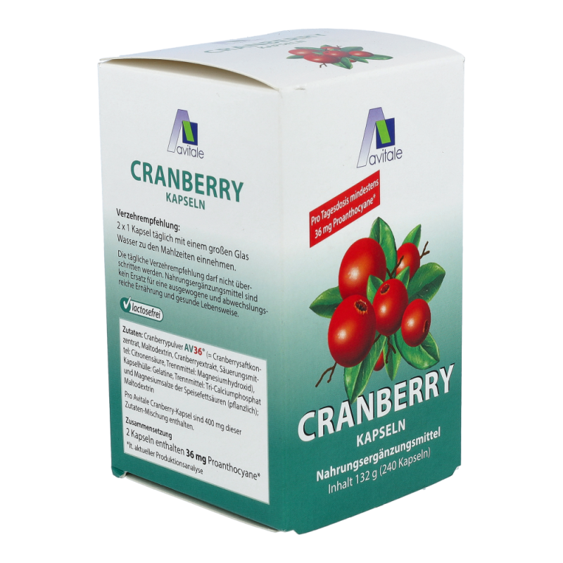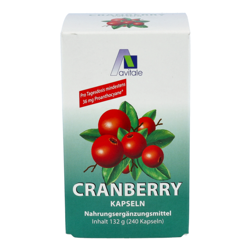 Avitale Cranberry Kapseln sind gut für das Wohlbefinden. Einige Inhaltsstoffe in den Cranberries, wie Flavonoide, Polyphenole und vor allem die Proanthocyane sind als sekundäre Pflanzenstoffe bekannt. Der Genuss von Cranberries mit ihren Inhaltsstoffen kann für das allgemeine Wohlbefinden eine wertvolle Unterstützung darstellen.